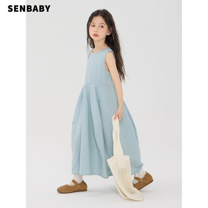 【现货亲子】senbaby童装女童夏季儿童背心裙蓝色设计款连衣裙