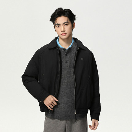 SOZO男士百搭简约外套潮牌秋冬季翻领拉链开衫短款休闲工装羽绒服