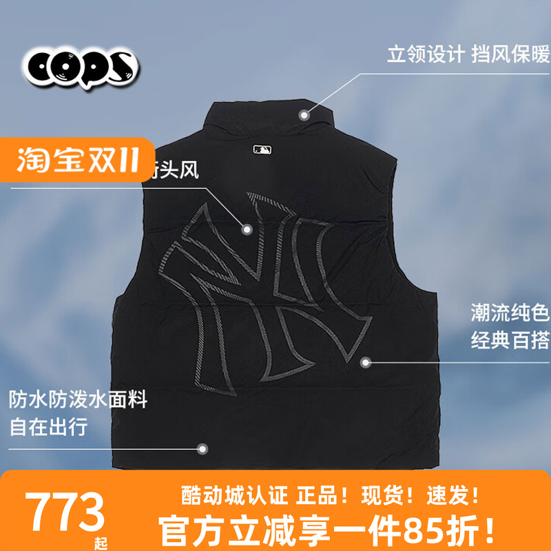 MLB鸭羽绒服马甲坎肩背心男女装2025冬季新款情侣运动服3ADVB0156