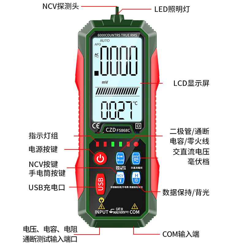 全自动智能防烧万用表数字高精度家用维修电工万能表小型便携式