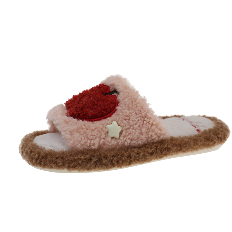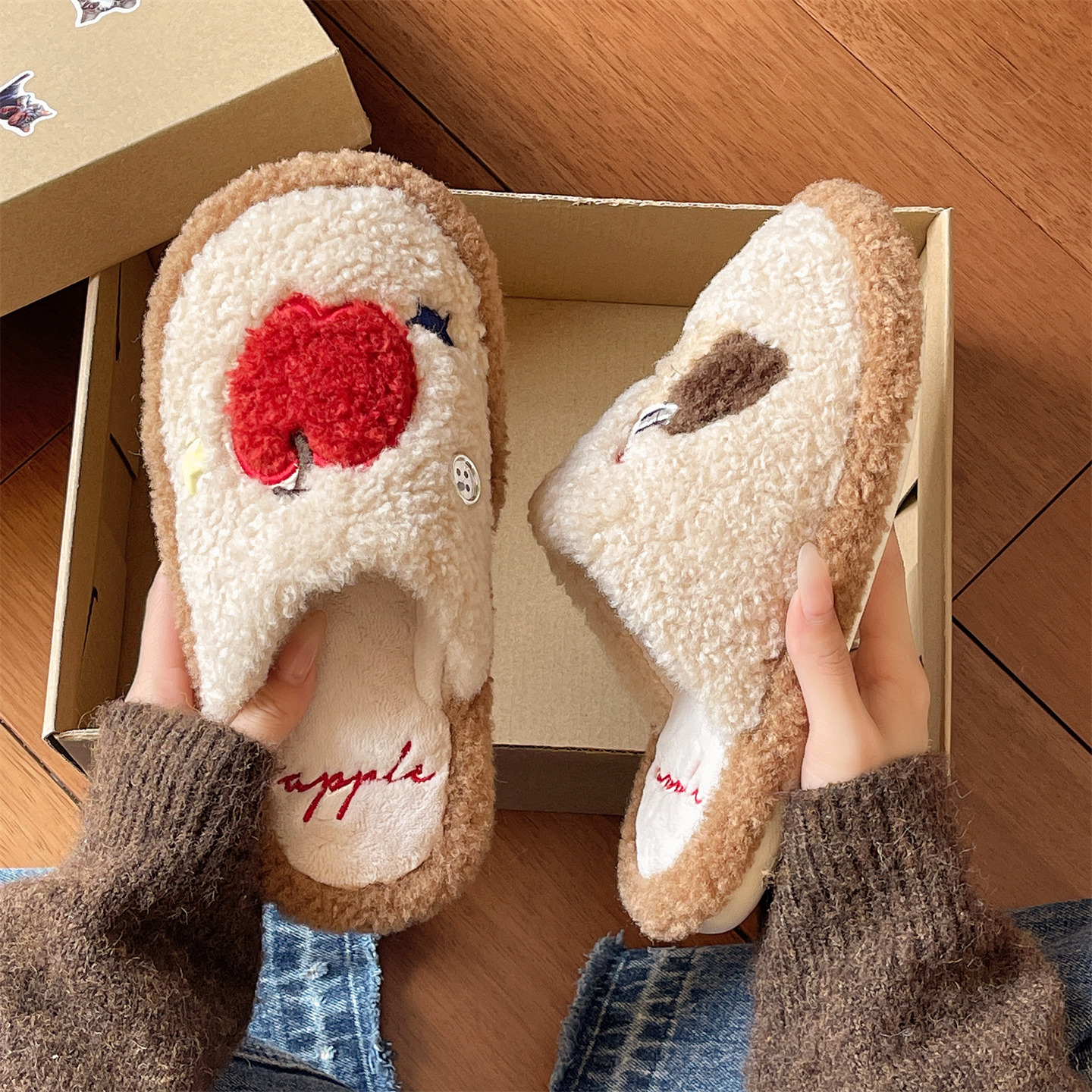 软底毛毛拖鞋女冬季可爱苹果小狗室内居家防滑毛绒保暖月子棉拖鞋