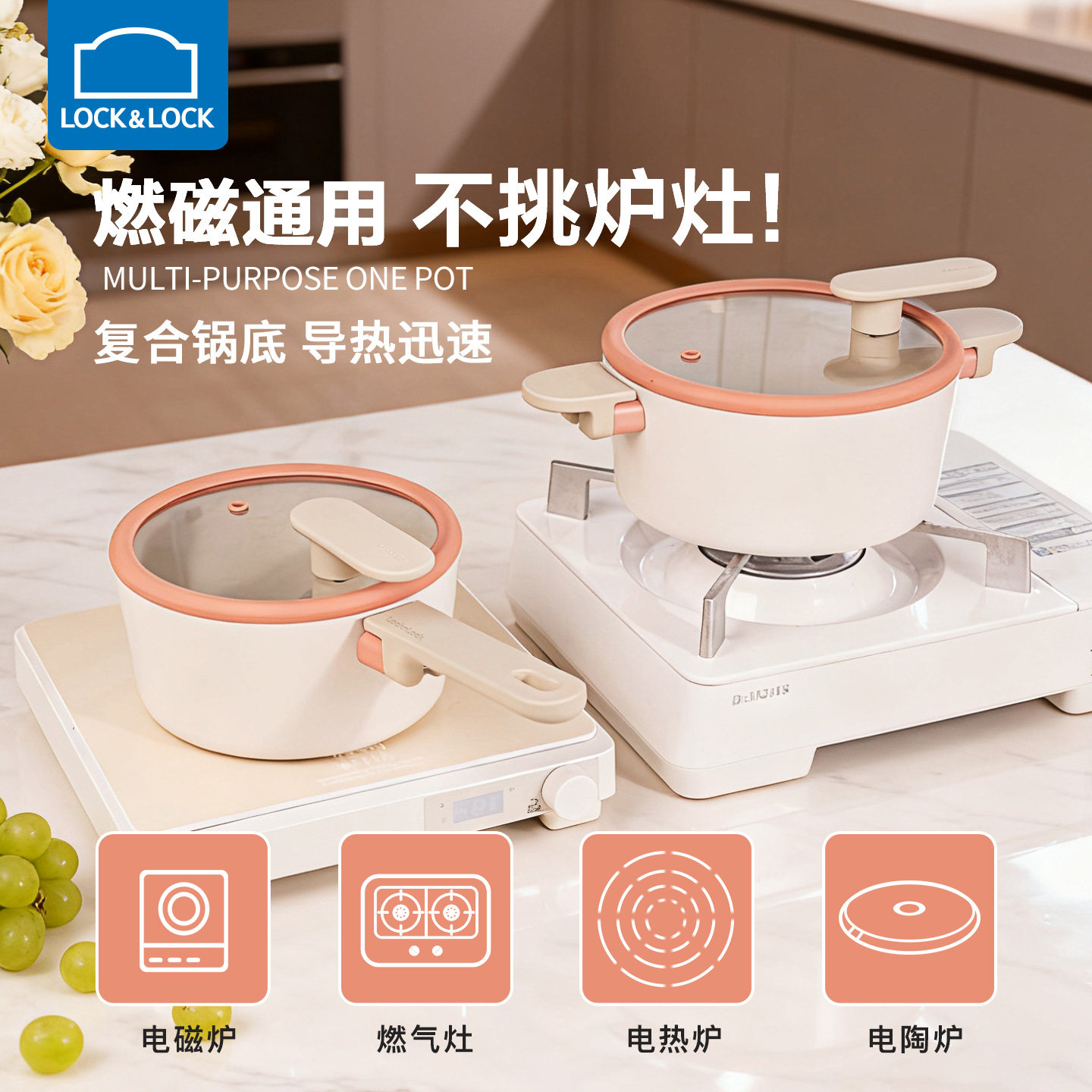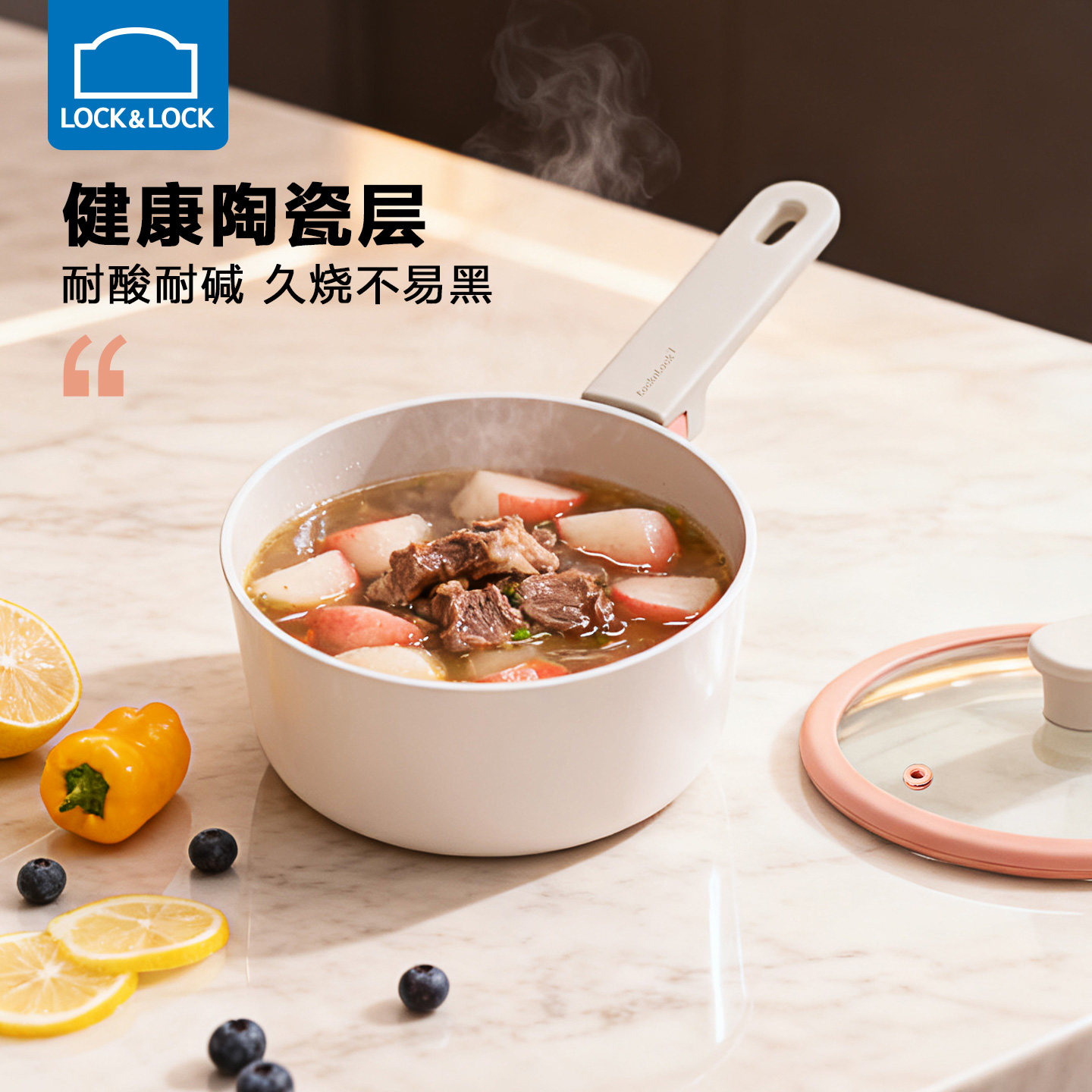 乐扣乐扣陶瓷奶锅不粘锅蒸煮泡面平底婴幼儿宝宝辅食一人食小汤锅