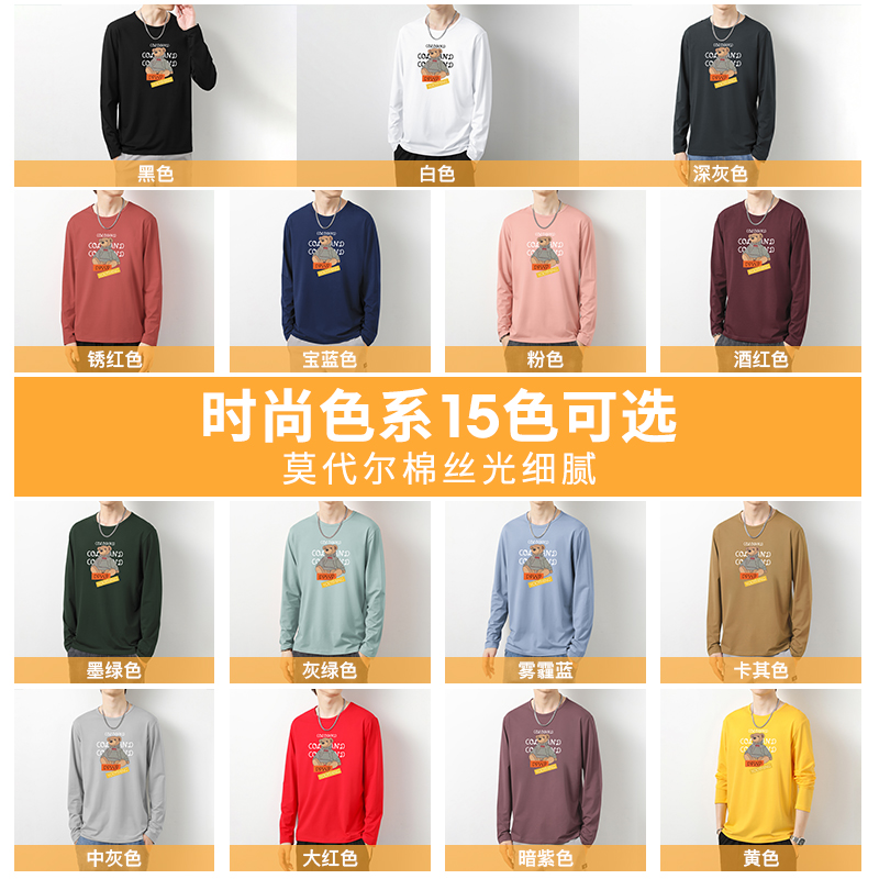 小熊t恤男士长袖潮牌潮流ins圆领上衣服内搭打底衫秋衣体恤