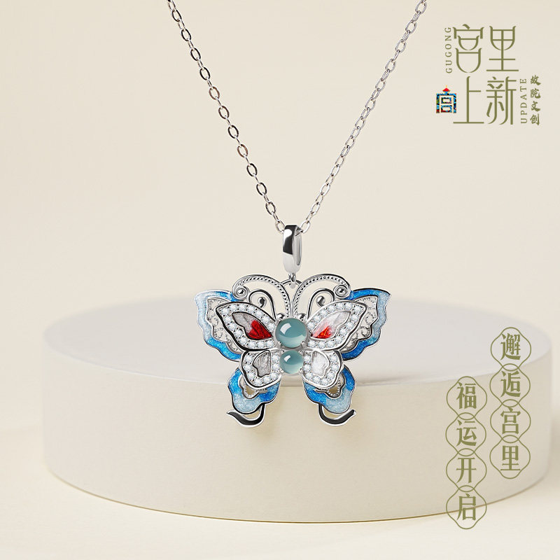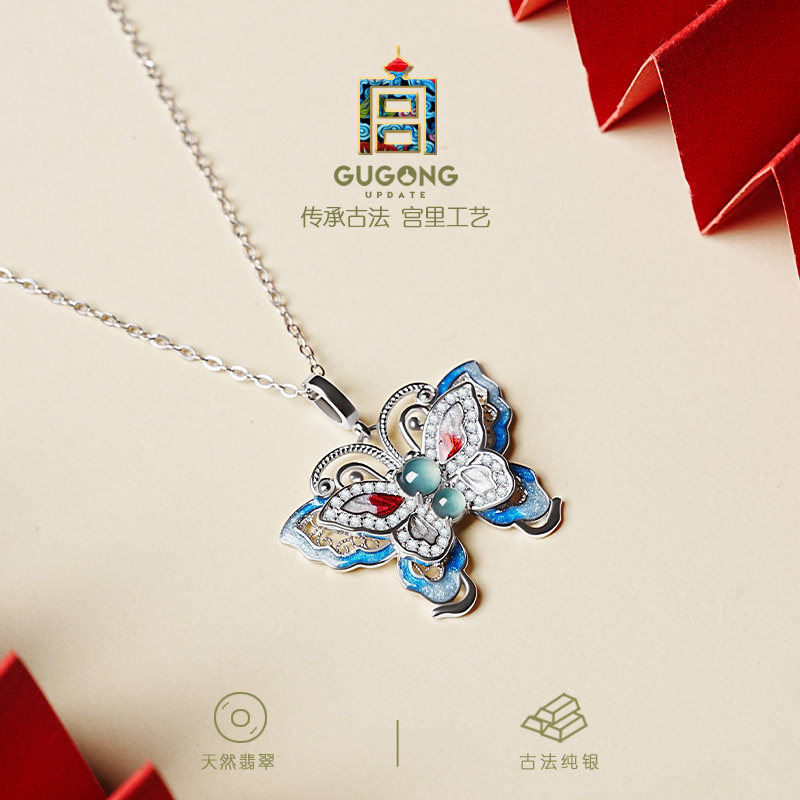 宫里上新蝴蝶项链纯银女款天然翡翠吊坠新中式生日三八礼物送妈妈