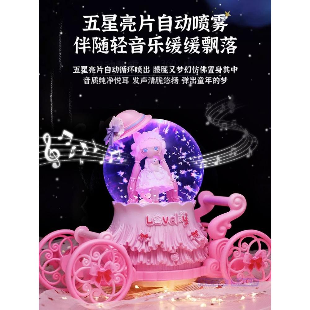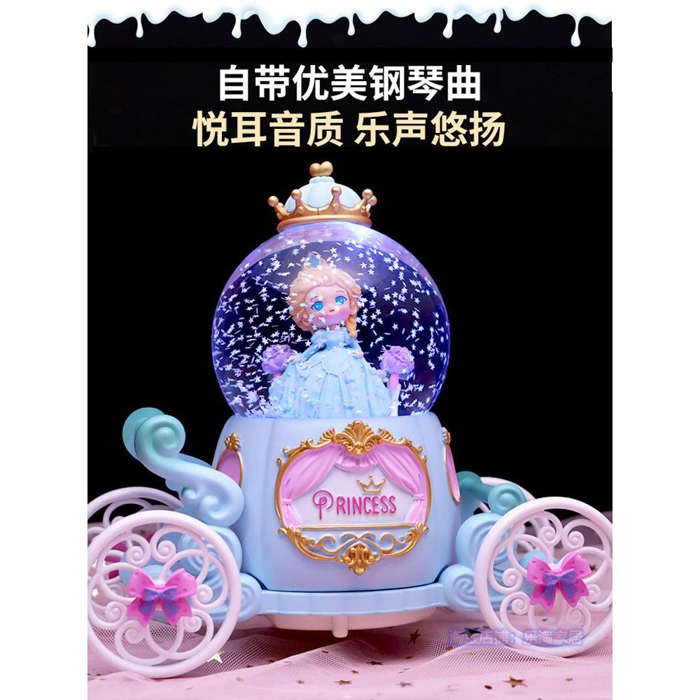 梦幻公主小女孩南瓜马车飘雪水晶球八音盒旋转音乐盒儿童生日礼物