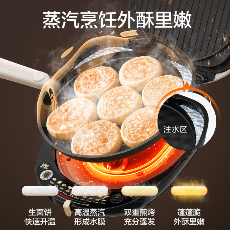 苏泊尔蒸汽电饼铛家用双面加热饼档烙饼锅煎烤饼机加深加大可拆洗