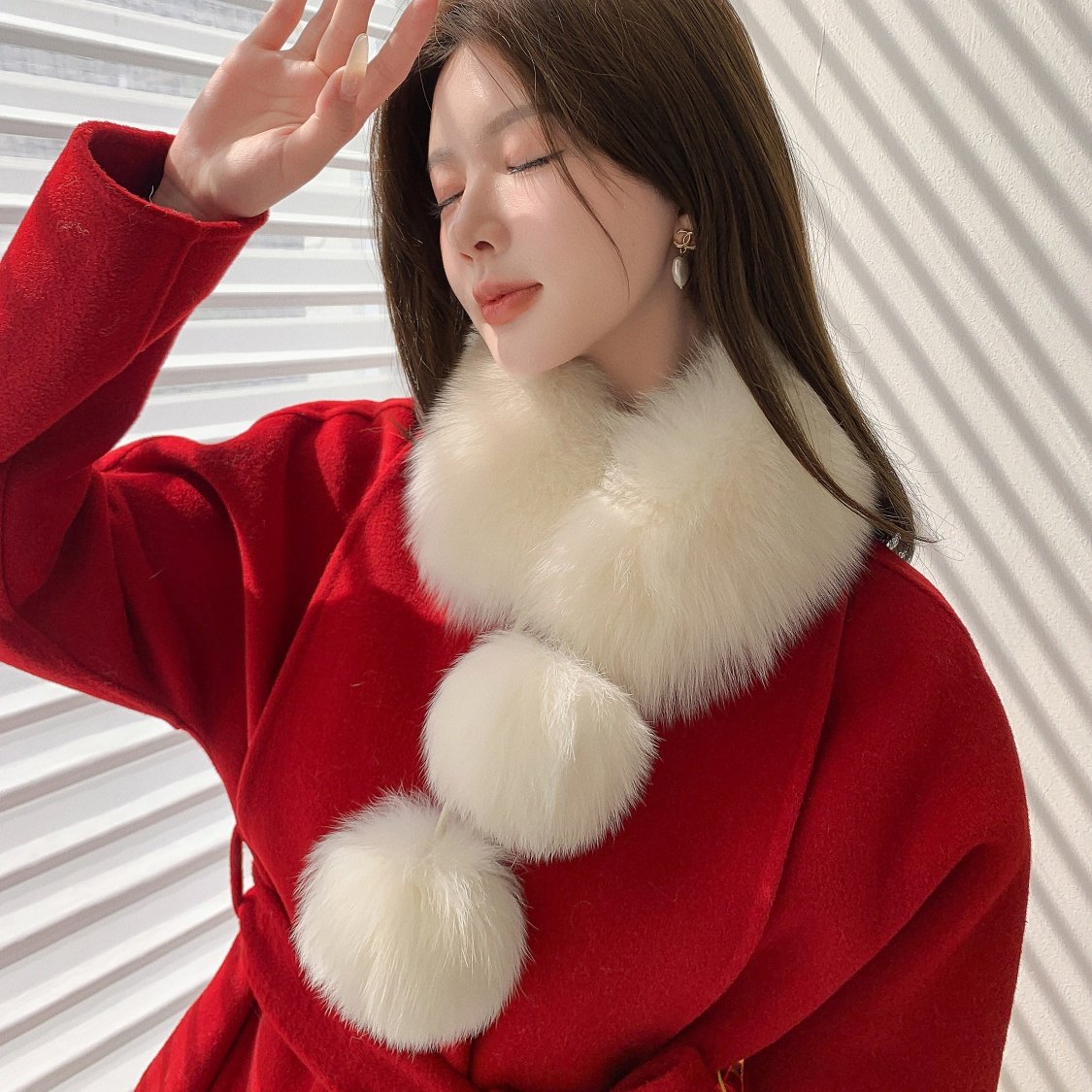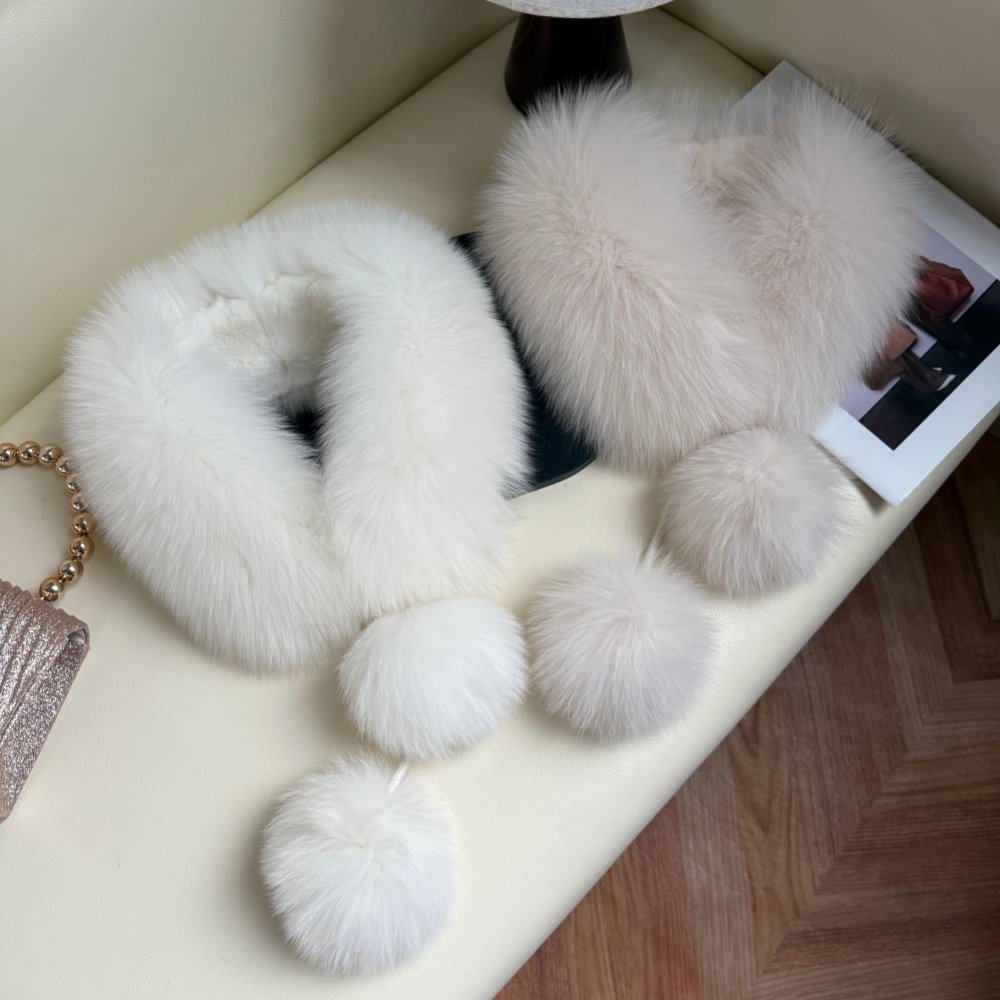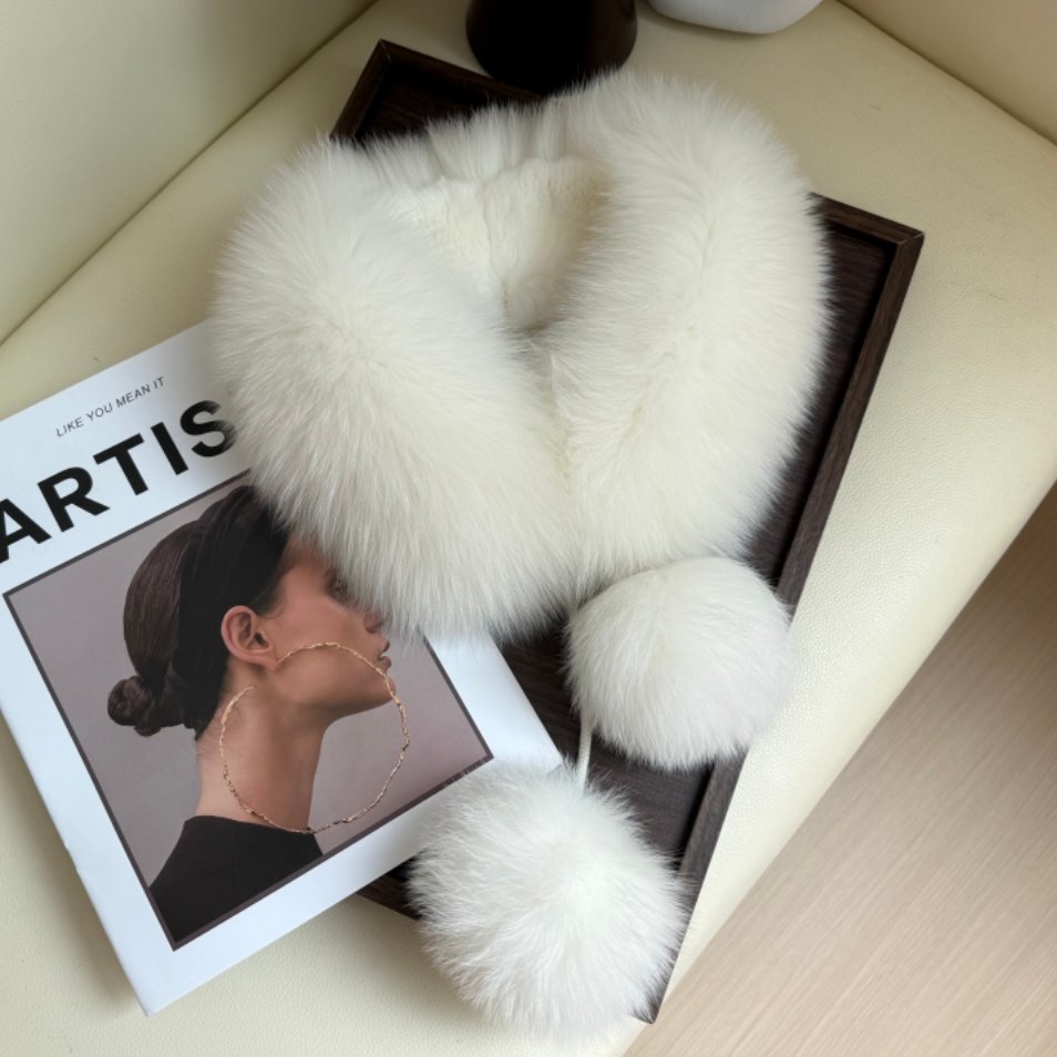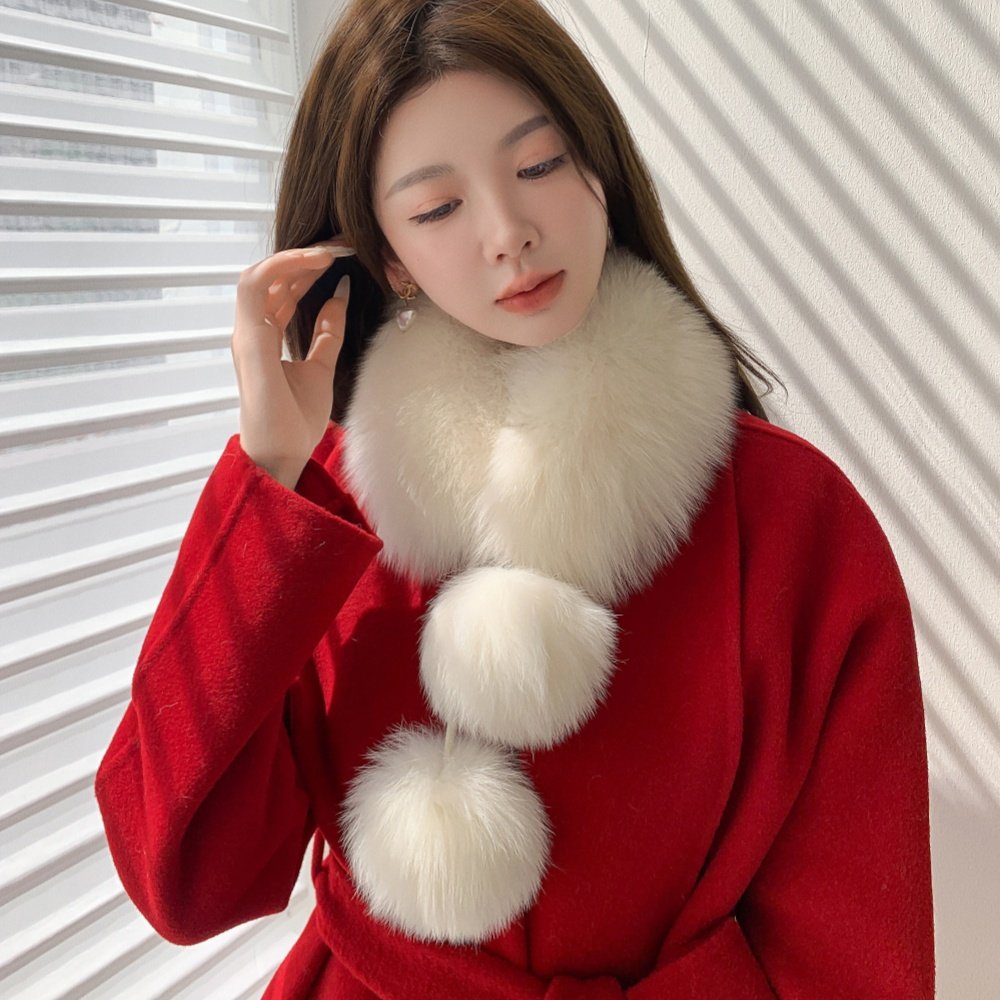 大毛球双面围巾磁吸扣真毛狐狸毛
