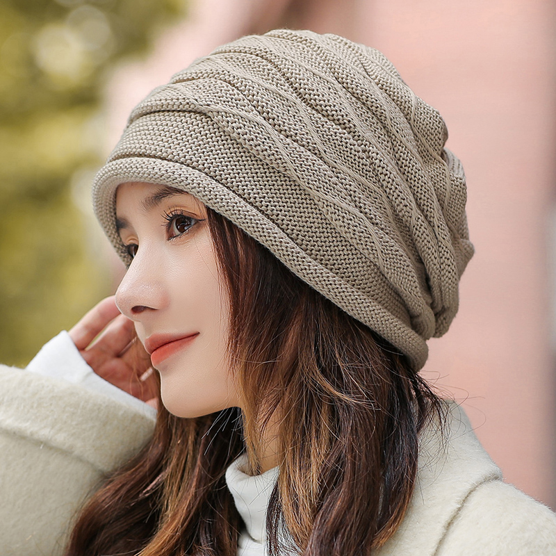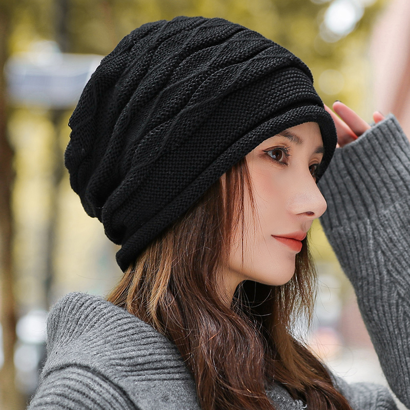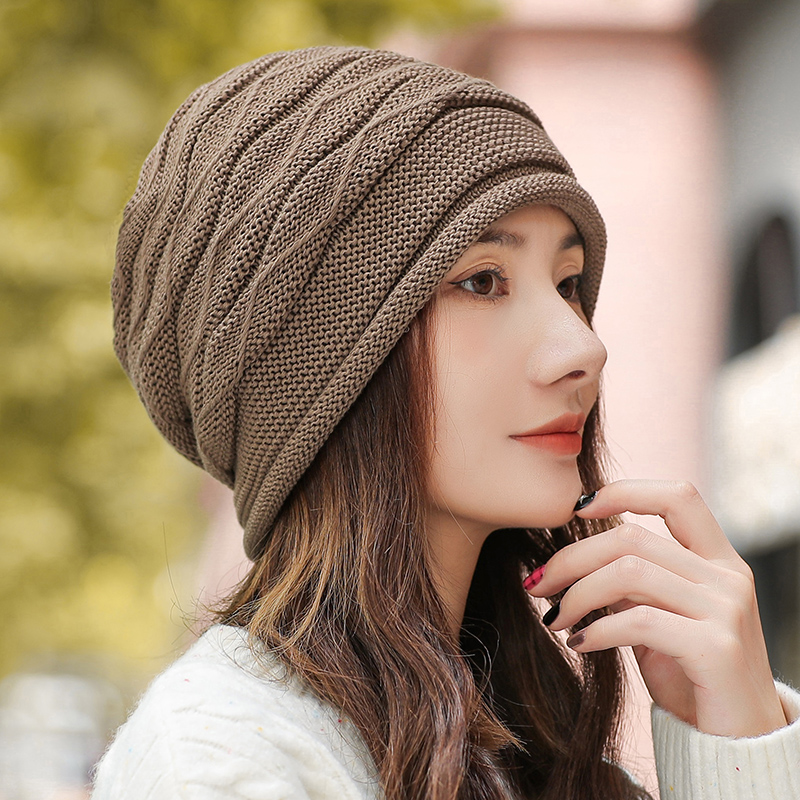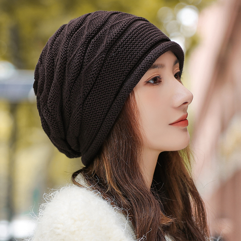 帽子女款秋冬保暖毛线帽2025新款时尚洋气针织堆堆帽大头围包头帽