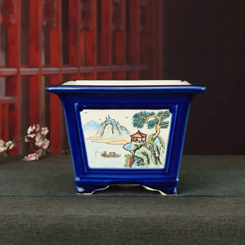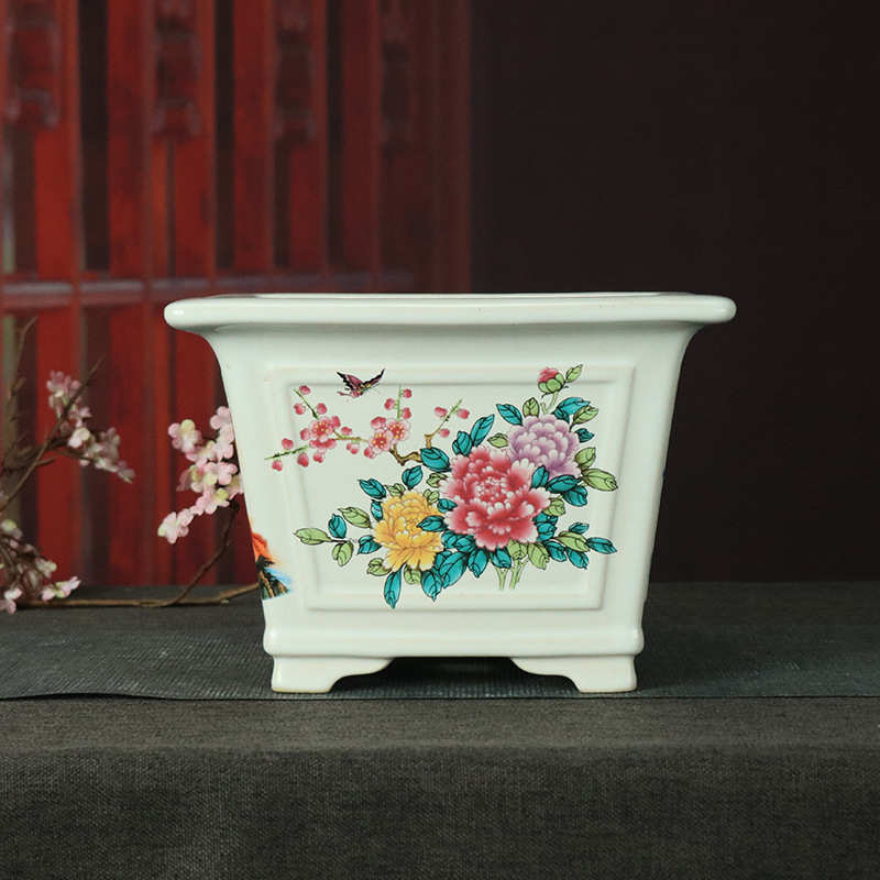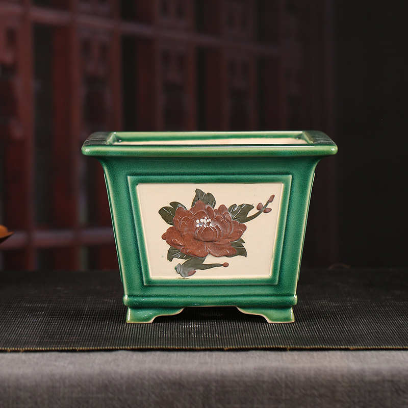 YLHCH03彩绘紫砂花盆批发方形多肉创意阳台装饰盆景盆绿萝兰花盆