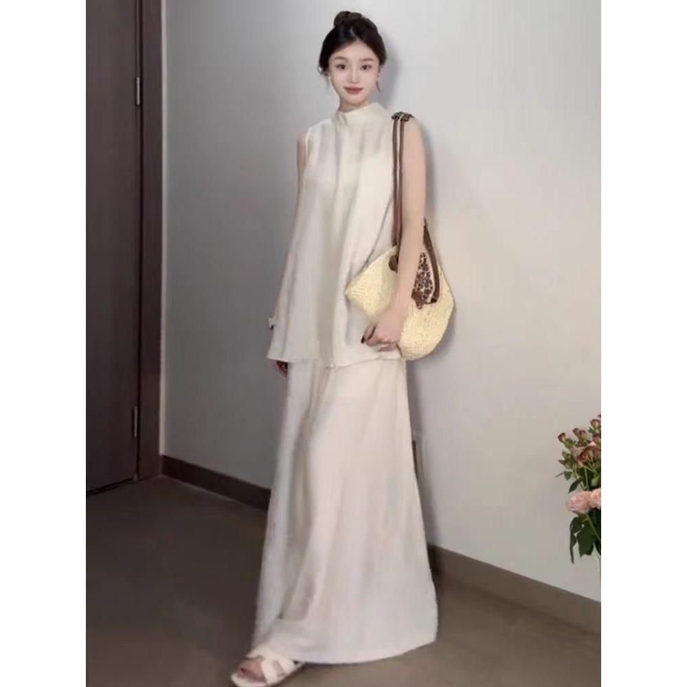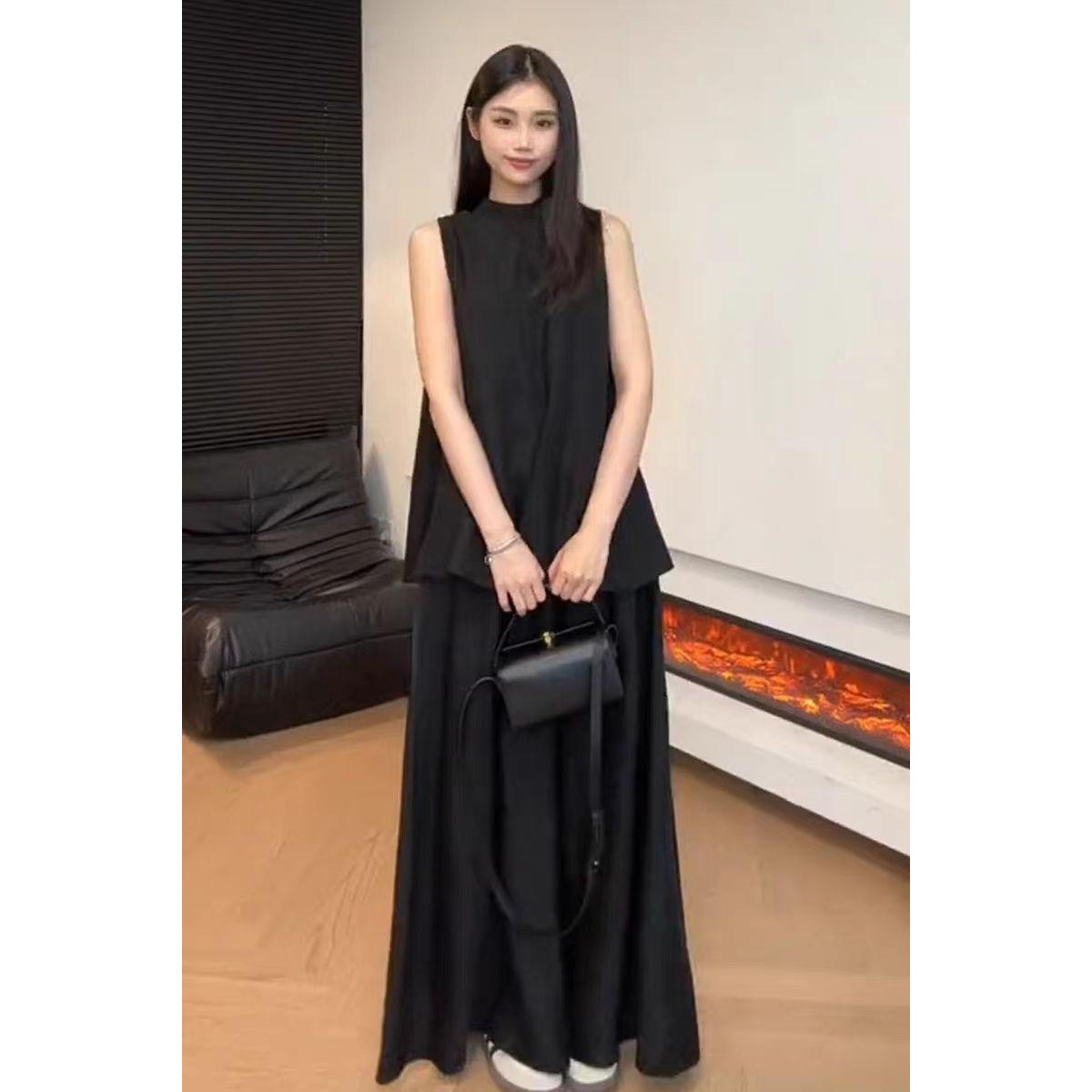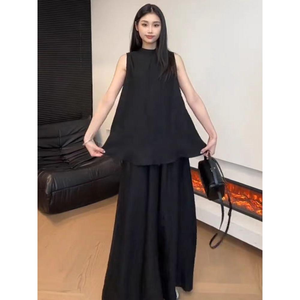 夏季新款女小个子松弛感穿搭休闲套装无袖背心高腰阔腿裙裤两件套