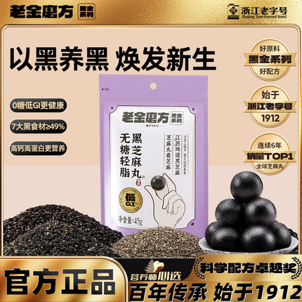 【B站x海飞丝x老金磨方】无糖轻脂黑芝麻丸黑芝麻球健康零食45g
