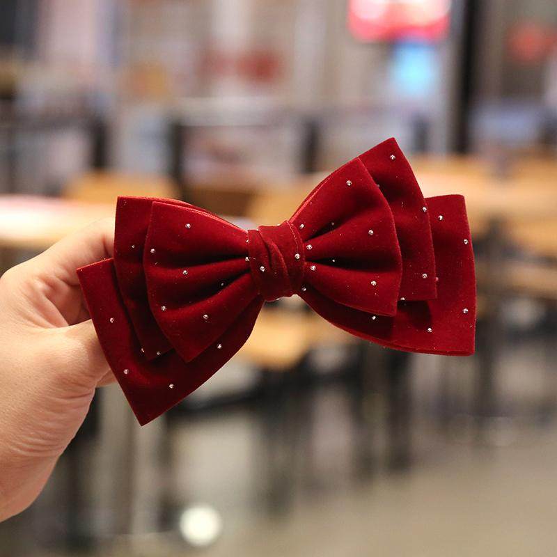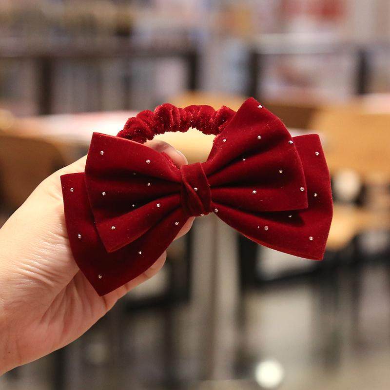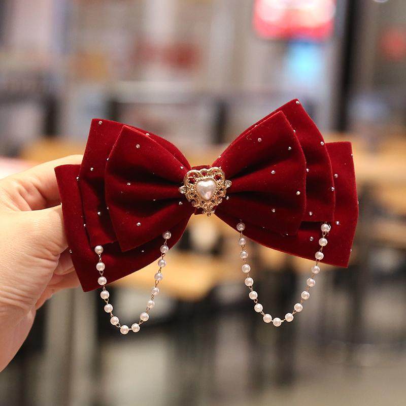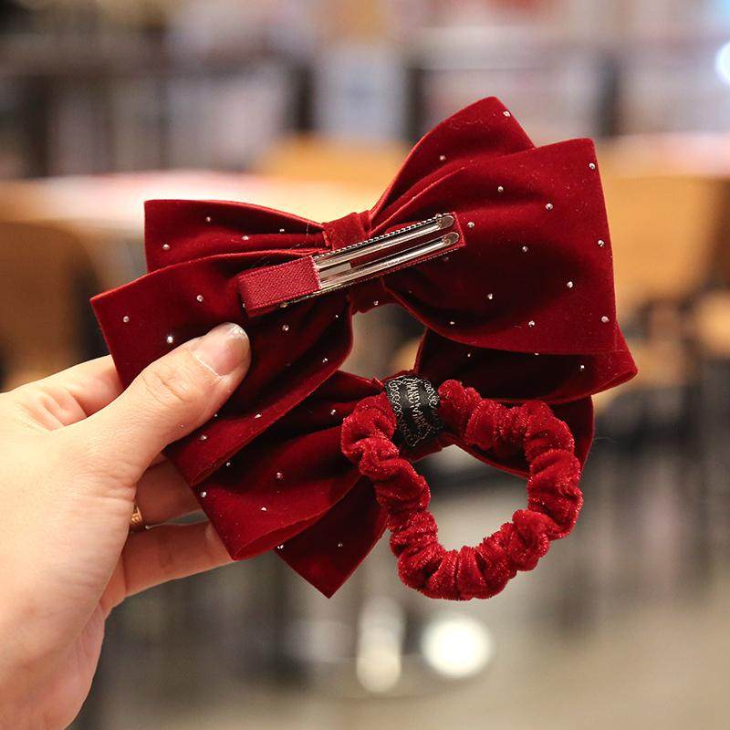 酒红蝴蝶结2025新年丝绒在逃公主女童发夹发圈小女孩发卡头绳发饰