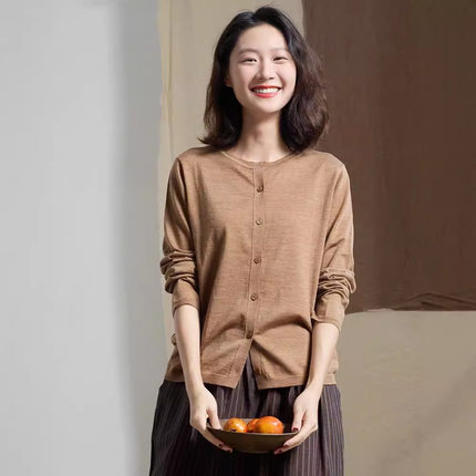 谷家 100%羊毛简约气质纯色针织开衫 通勤百搭短款毛衣小外套女