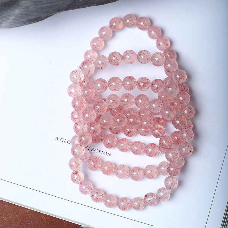 天然白水体大花草莓晶圆珠手链 女款正品草莓晶水晶手串饰品礼物