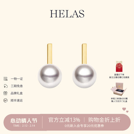 HELAS赫拉音符系列Akoya海水珍珠耳钉18K金耳饰女耳环珠宝礼物