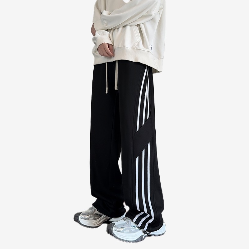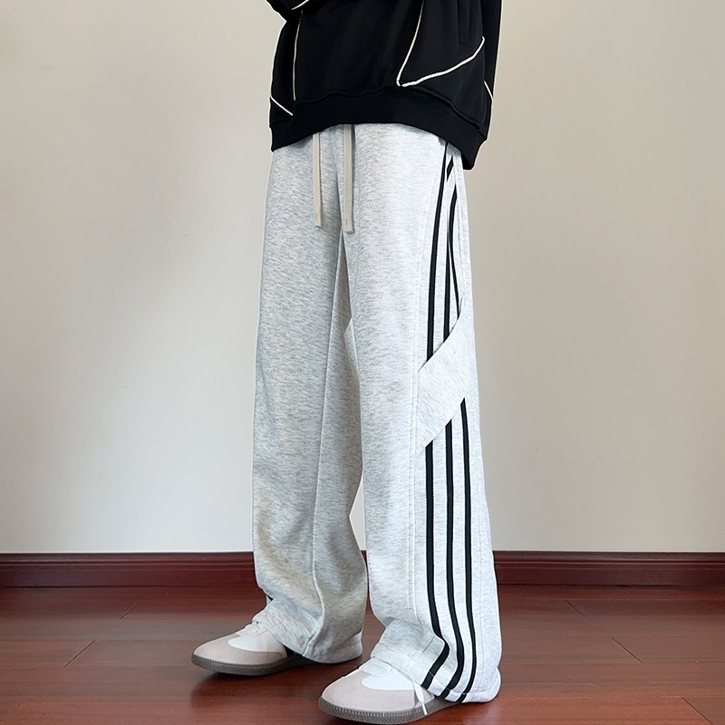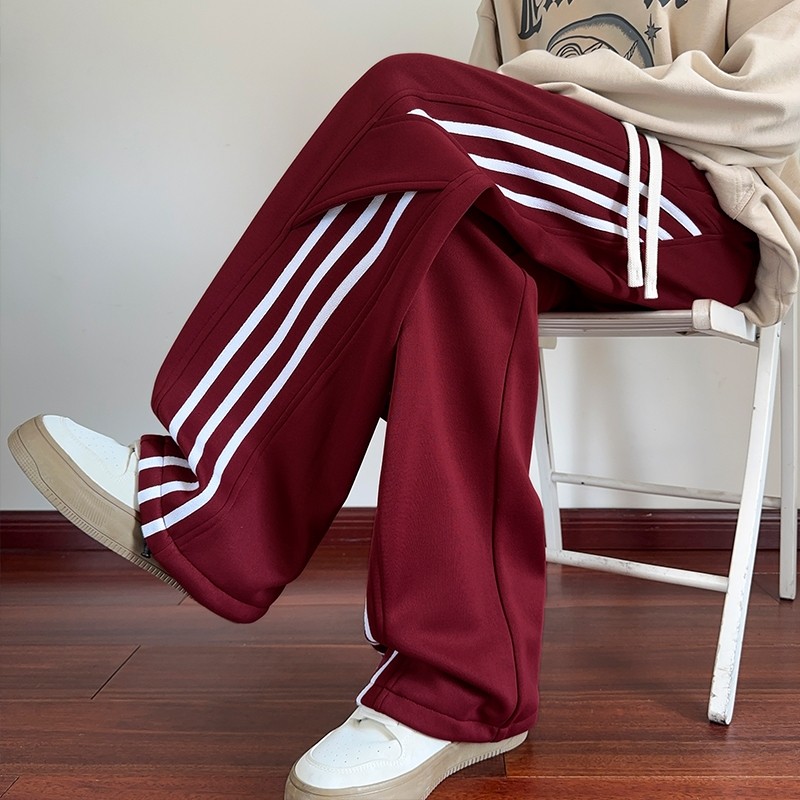 卫裤男款加绒加厚潮牌潮流美式休闲裤子宽松直筒三条杠运动裤以純