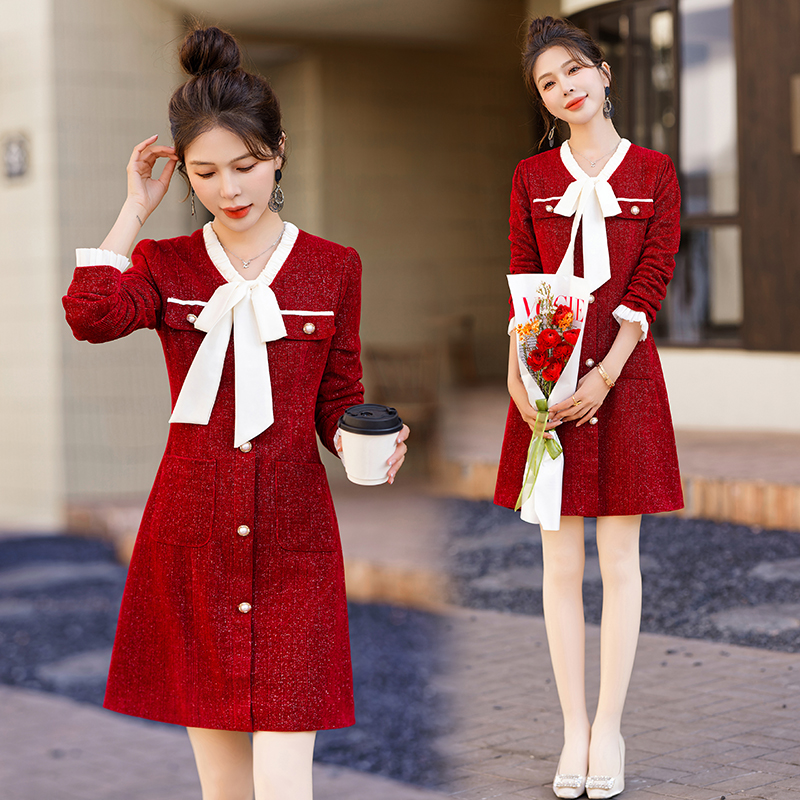 法式气质连衣裙女春季长袖2025新款漂亮拼接收腰显瘦连衣裙