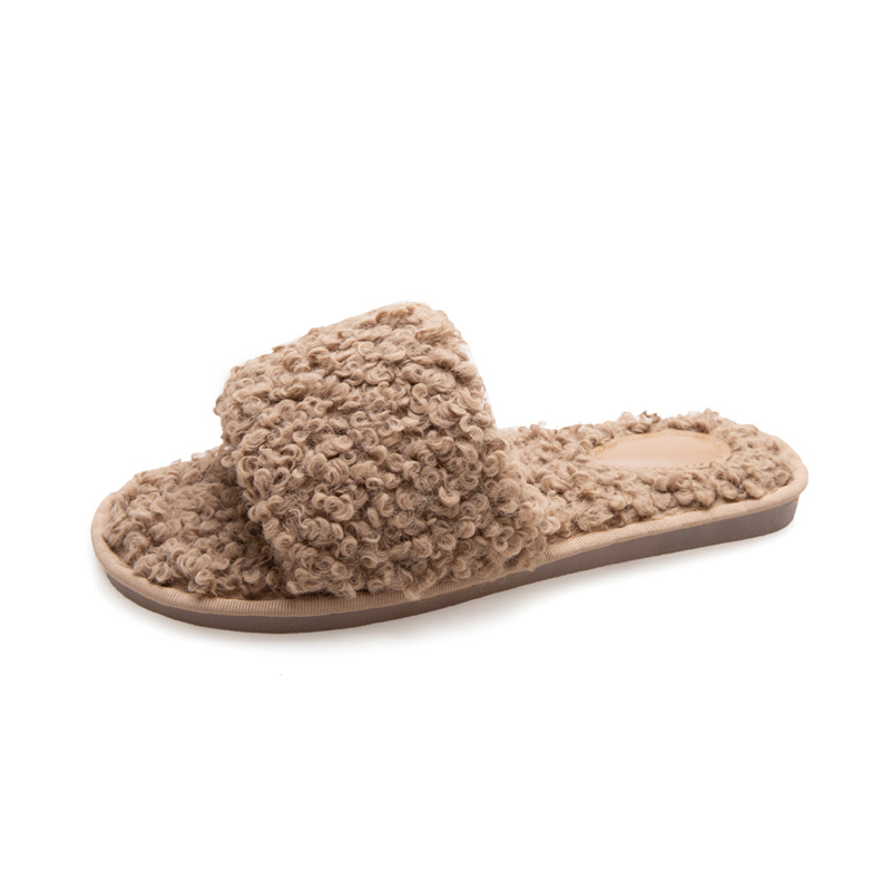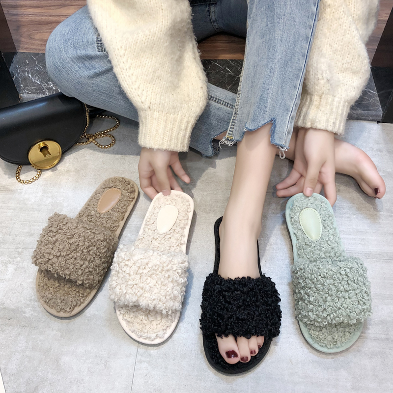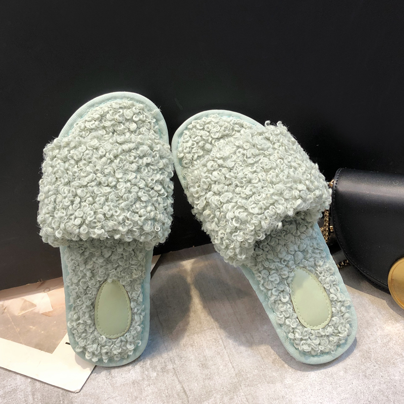 2019秋冬新款毛毛拖鞋女式一字型卷毛家居家地板拖软底防滑月子鞋
