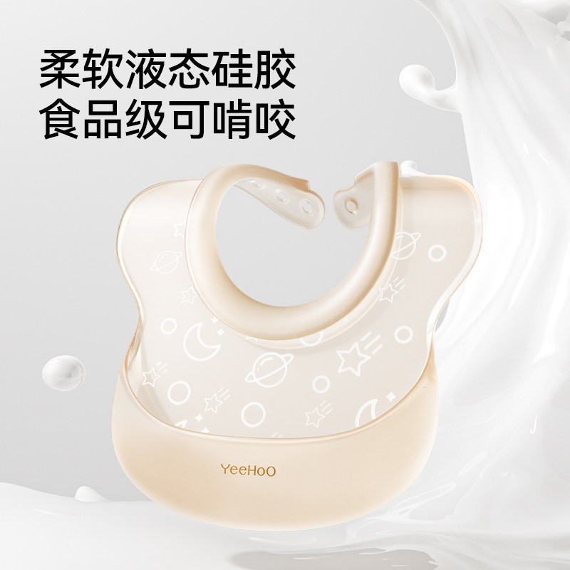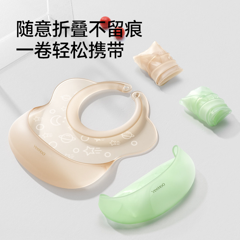 英氏宝宝吃饭围兜大号辅食饭兜防水硅胶婴儿便携儿童围嘴口水防脏