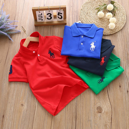 儿童纯棉短袖t恤夏中大童男童翻领POLO衫经典女童小学生半袖班服