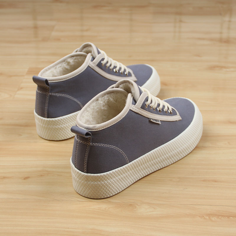 人本加绒二棉鞋女2024年新款韩版松糕厚底短靴百搭学生平底雪地靴