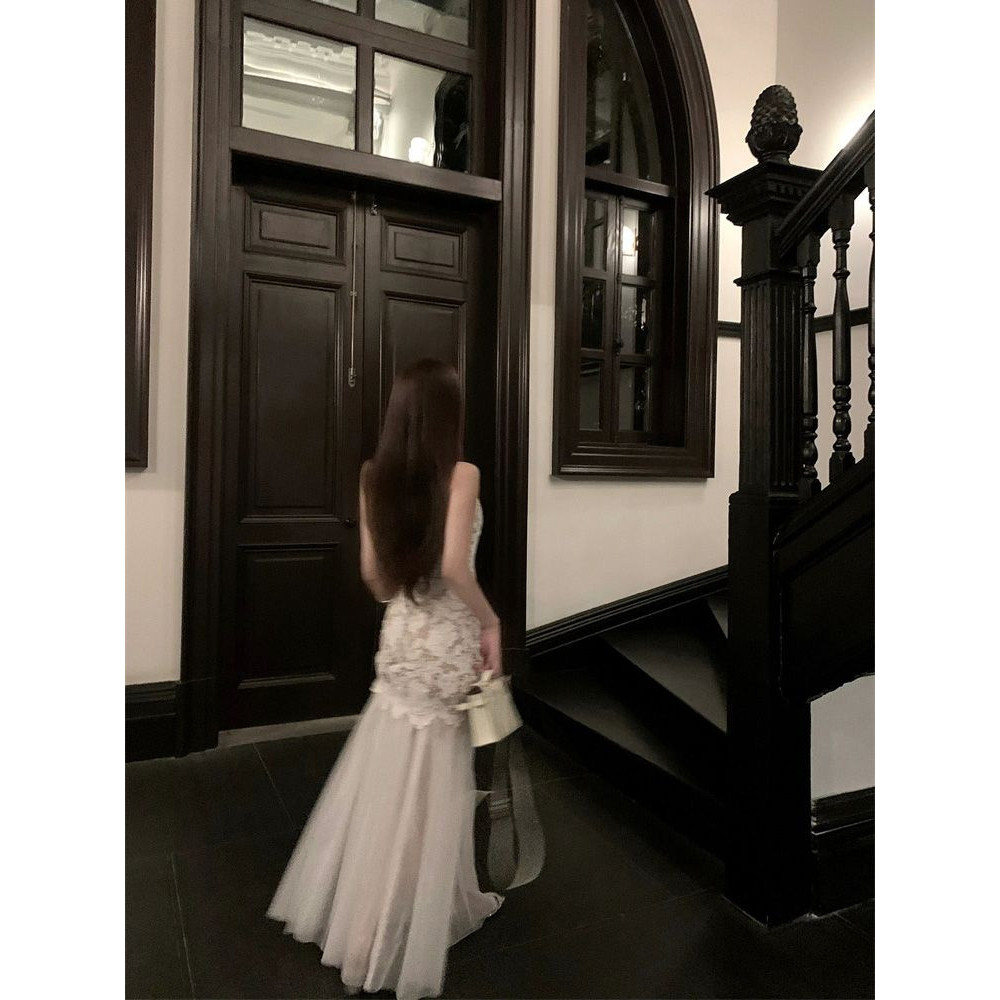 法式时尚名媛风设计感蕾丝拼接吊带连衣裙女新款显瘦网纱半裙套装