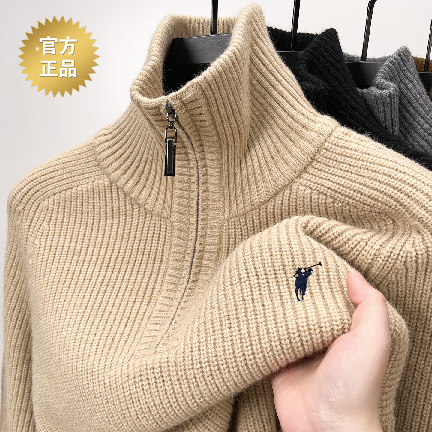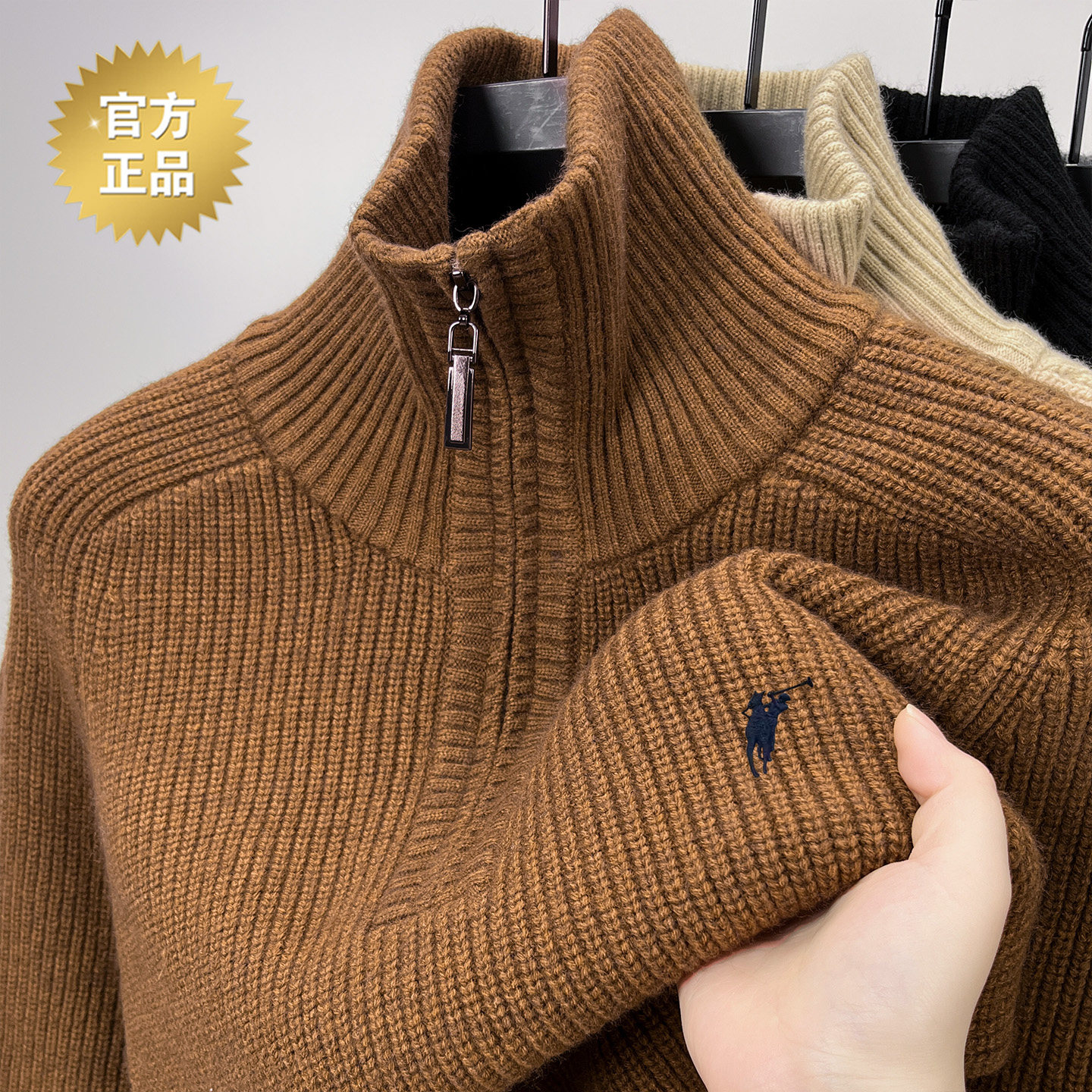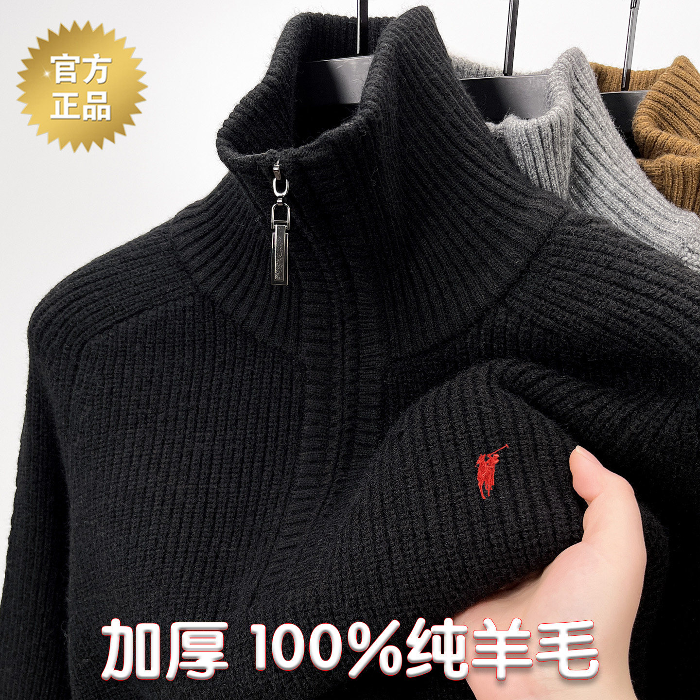 专柜保罗半拉链毛衣男秋冬加厚款保暖立领时尚休闲羊毛针织衫