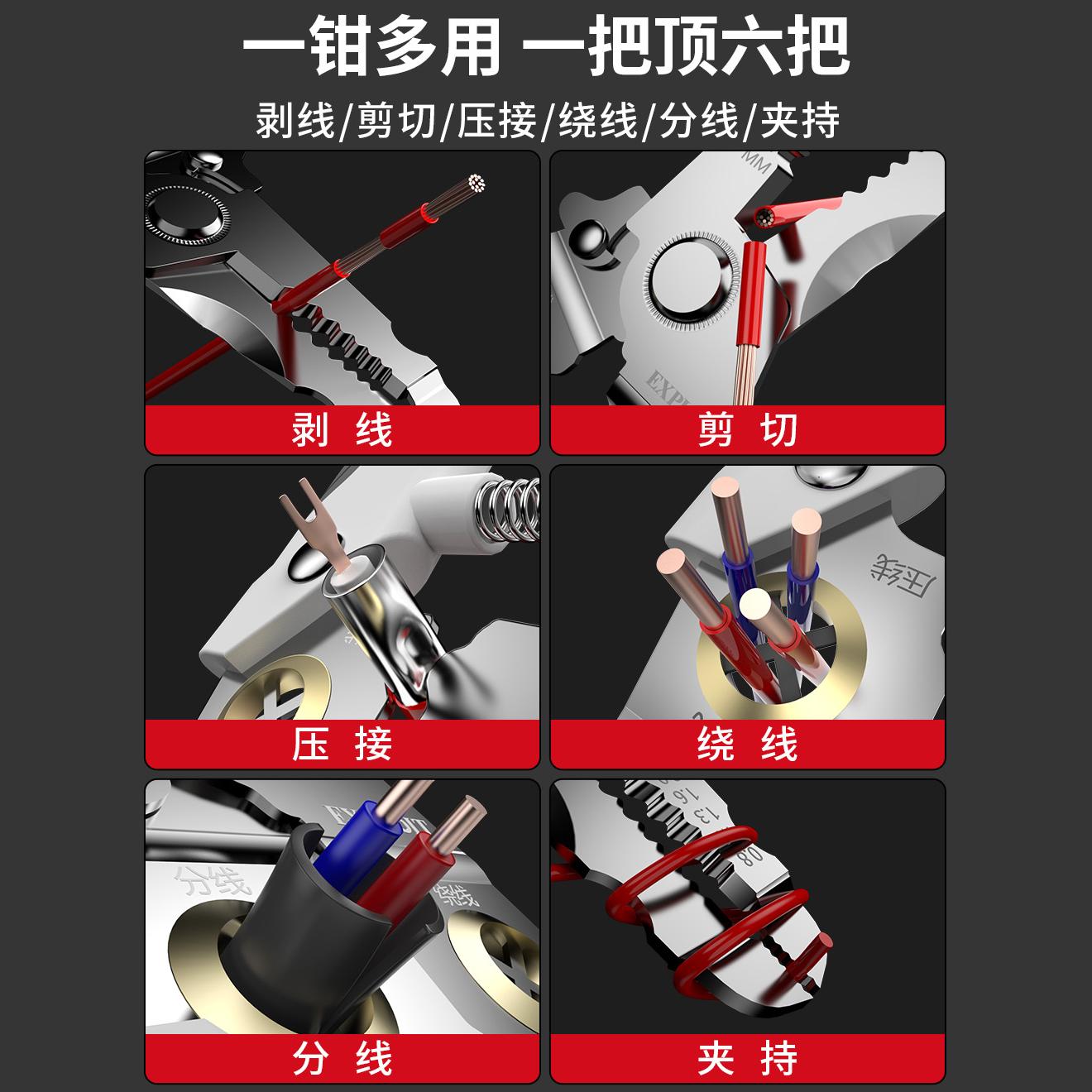 开拓剥线钳电工专用剪线钳多功能扒皮钳子手持多功能分线压线钳