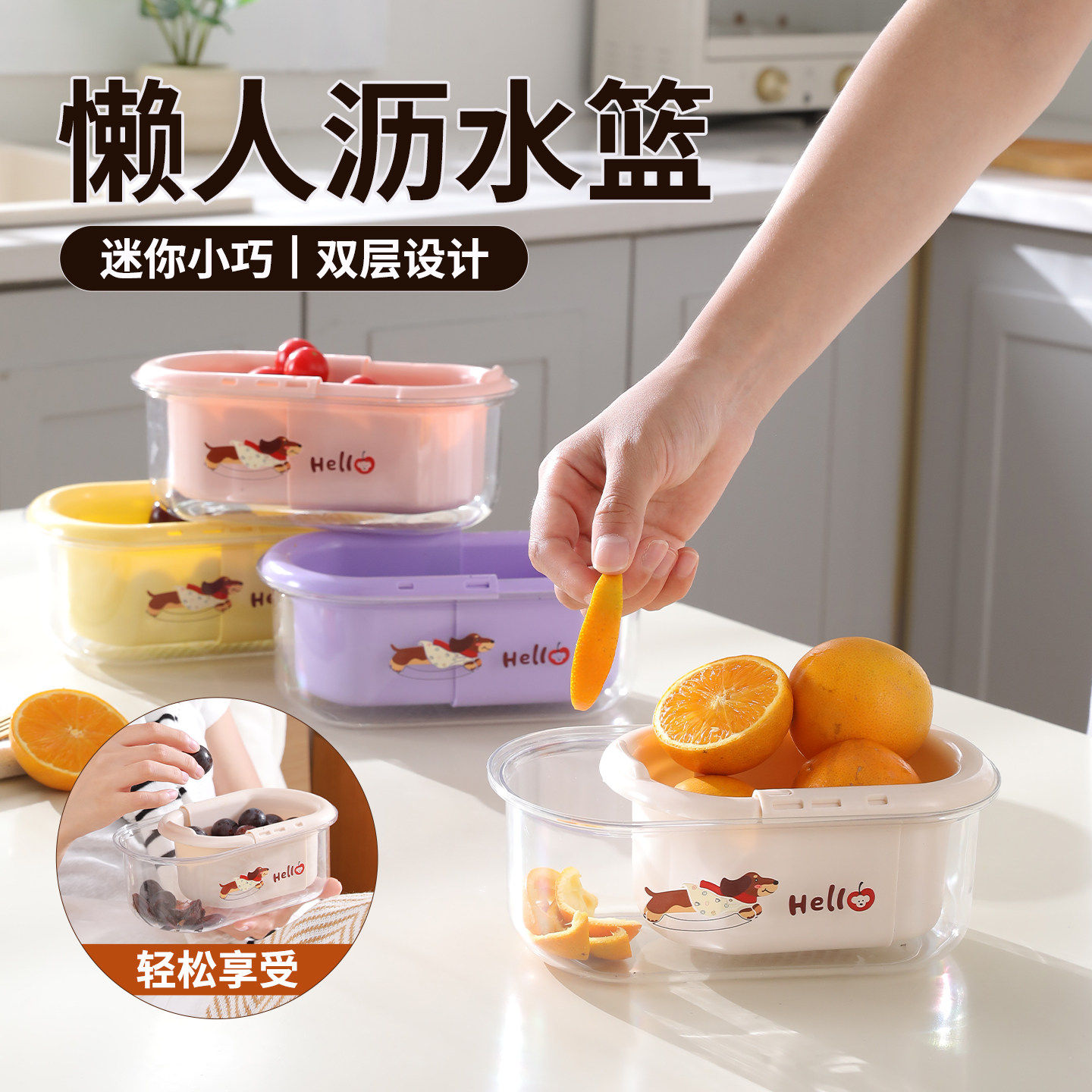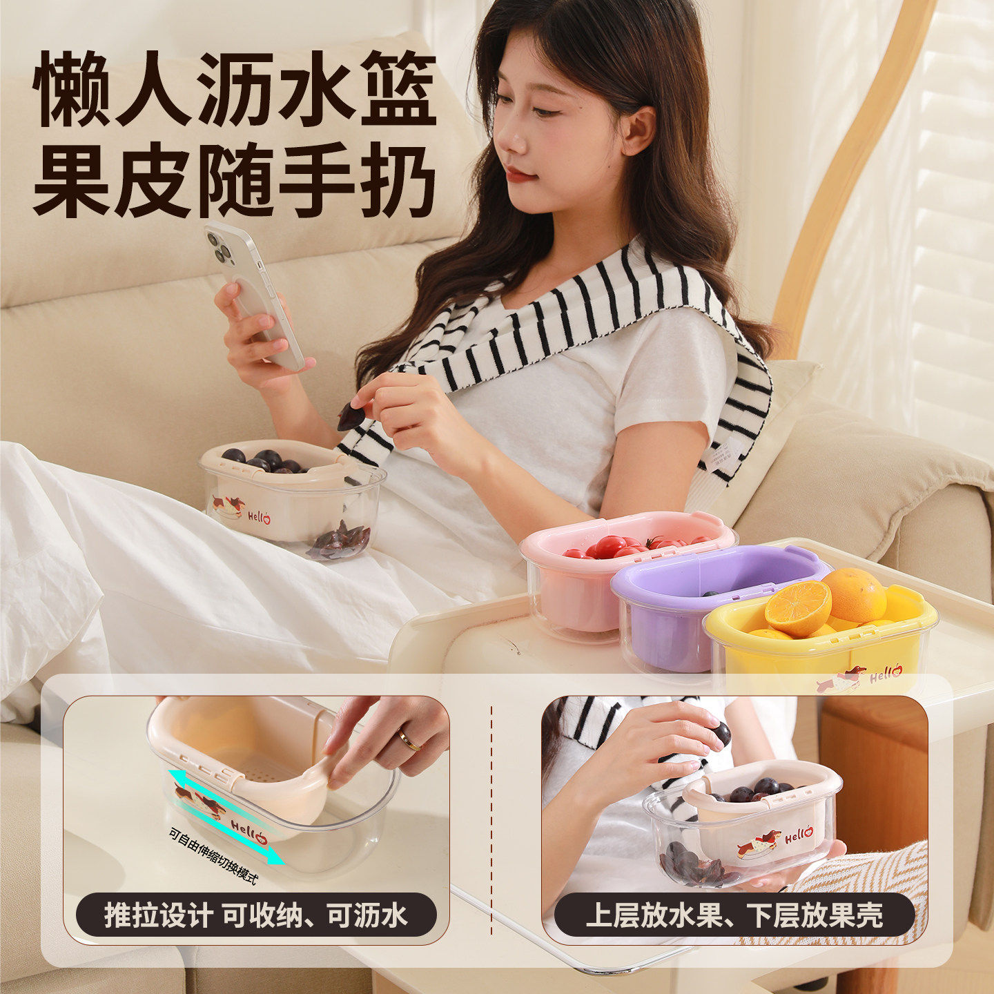 可伸缩沥水篮家用可爱水果篮子清洗滤水二合一新款懒人果盘洗菜篮