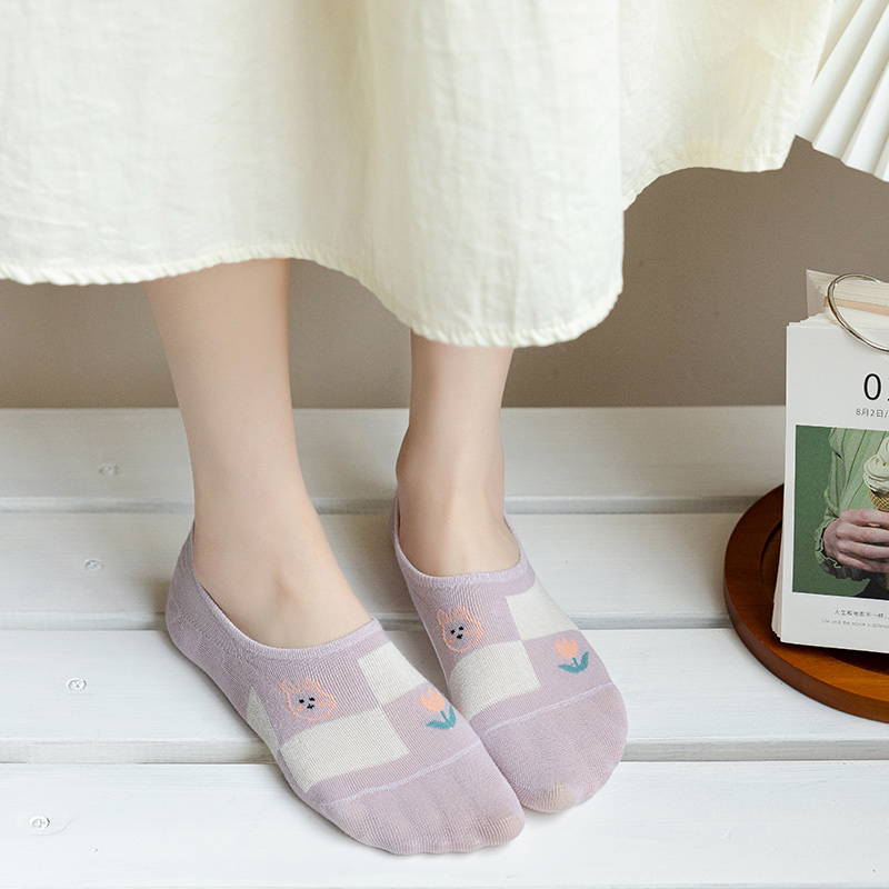 小爱心隐形女袜卡通兔子小花花纯棉浅口船袜硅胶夏季小熊短袜学生