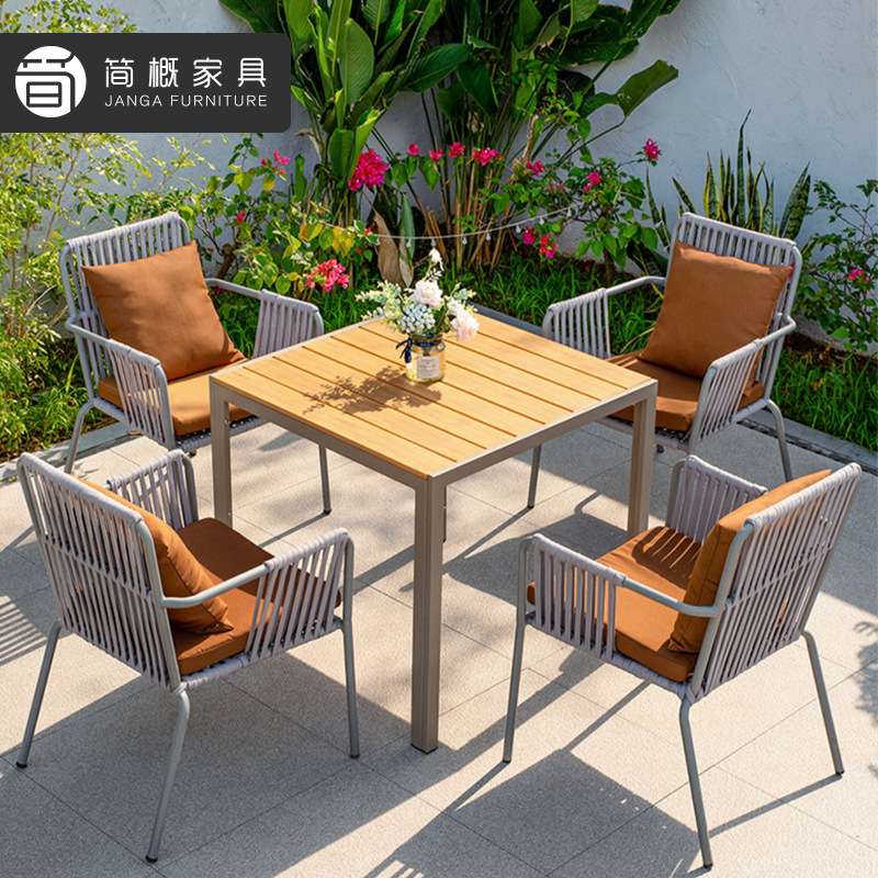 户外桌椅别墅庭院花园露台塑木桌椅组合室外防水露天阳台休闲家具