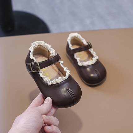 女小童花边假分趾公主小皮鞋