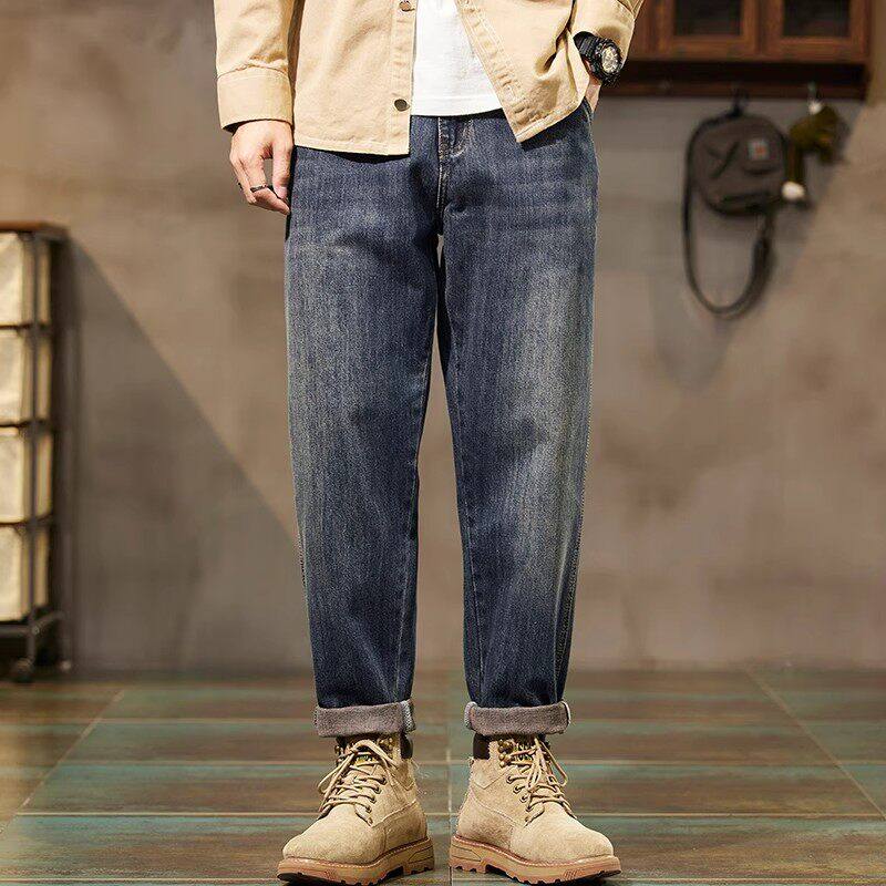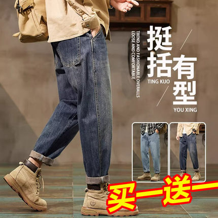 Yishion以纯实体店同款牛仔裤男士潮牌直筒宽松2025秋冬水洗工装
