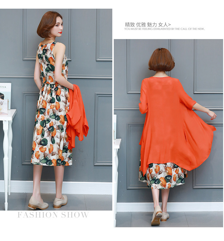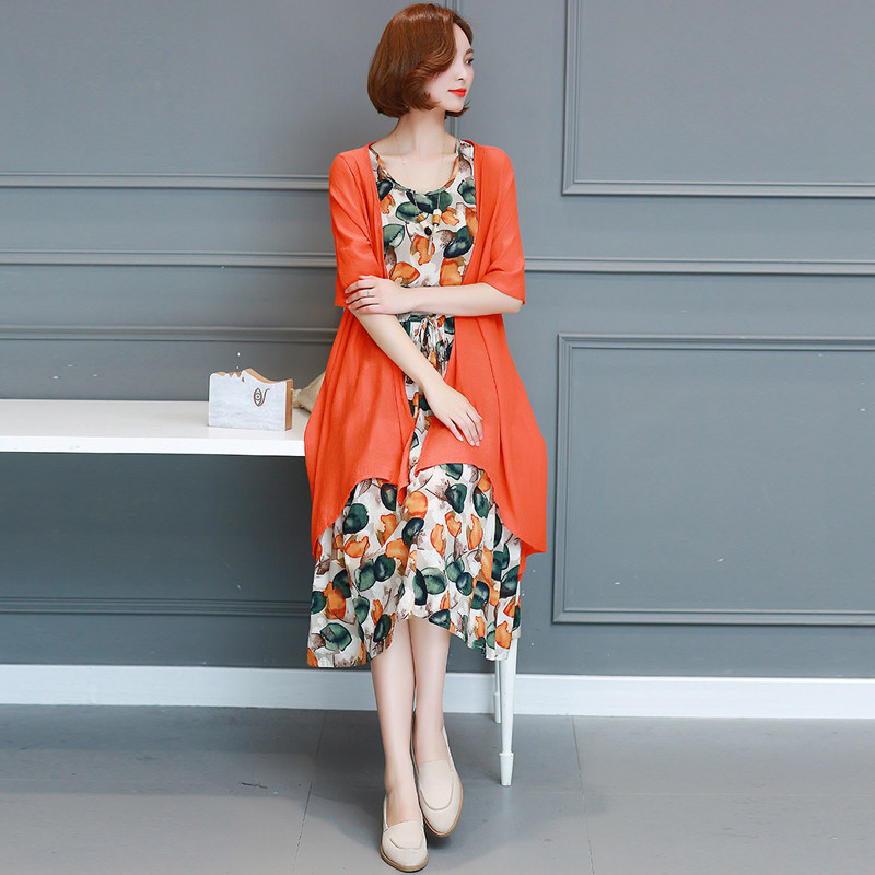 2023夏季宽松两件套棉麻套装连衣裙200斤胖妹妹遮肚系带棉绸长裙