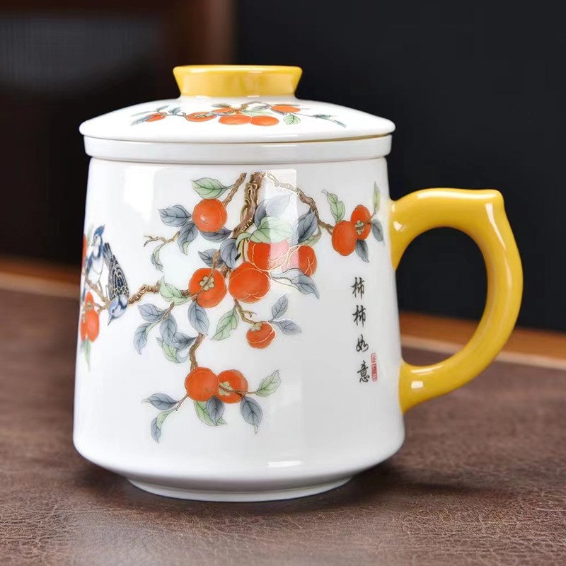 羊脂玉陶瓷茶杯男女个人专用过滤办公水杯带盖大容量泡茶水分离杯