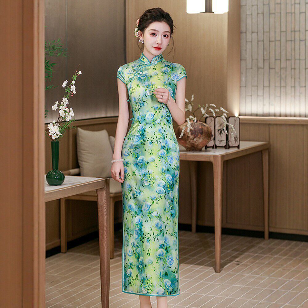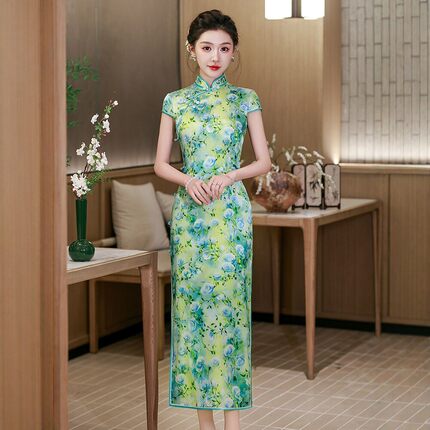 2026春夏装新款 新中式浪漫印花真丝桑蚕丝长款旗袍裙子连衣裙