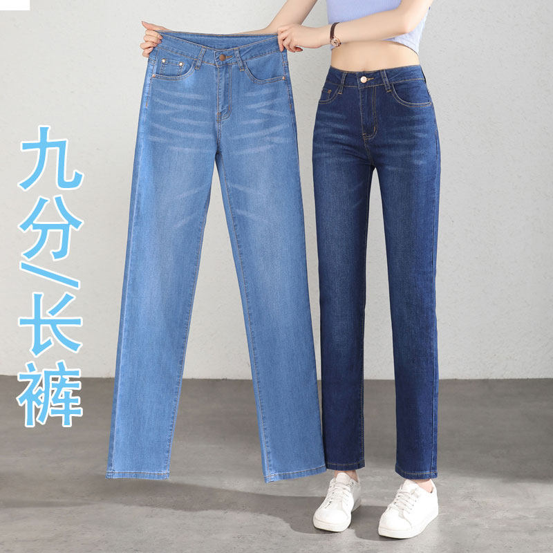 高腰直筒牛仔裤女修身显瘦2025夏季薄款女式百搭显高小个子九分裤