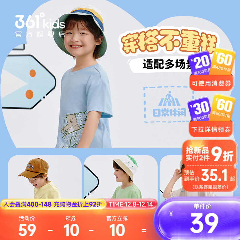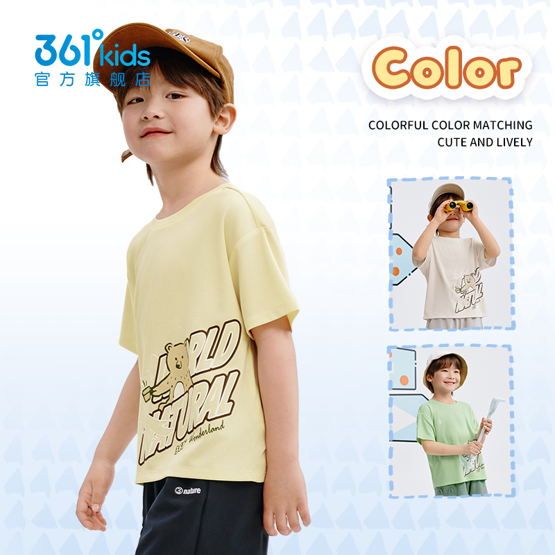 361°童装男童速干短袖2025夏季新款儿童冰感T恤印花可爱小童上衣