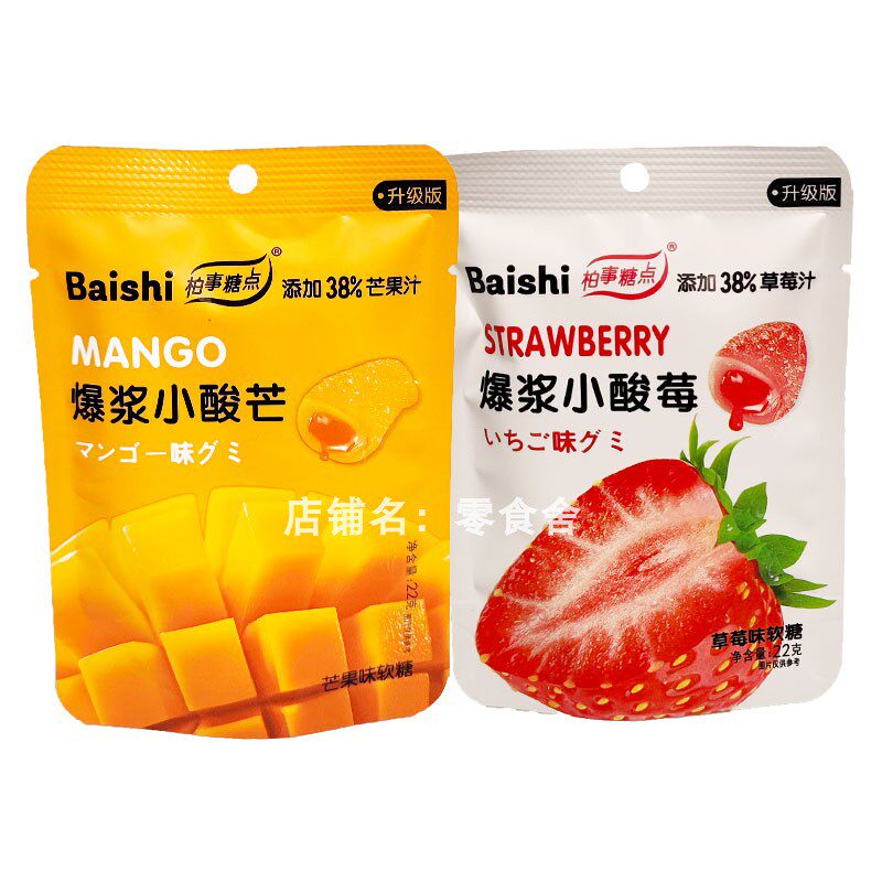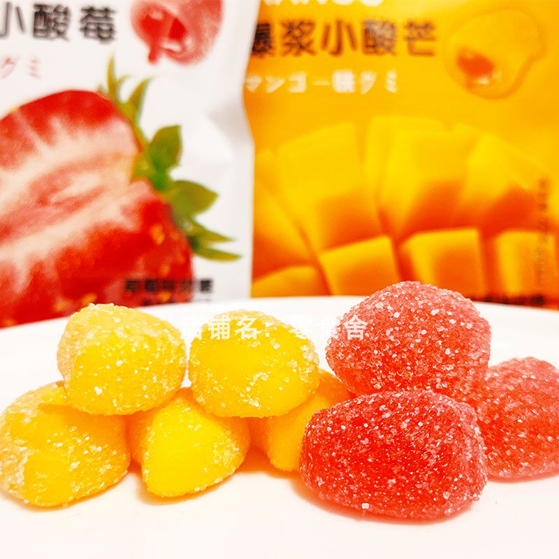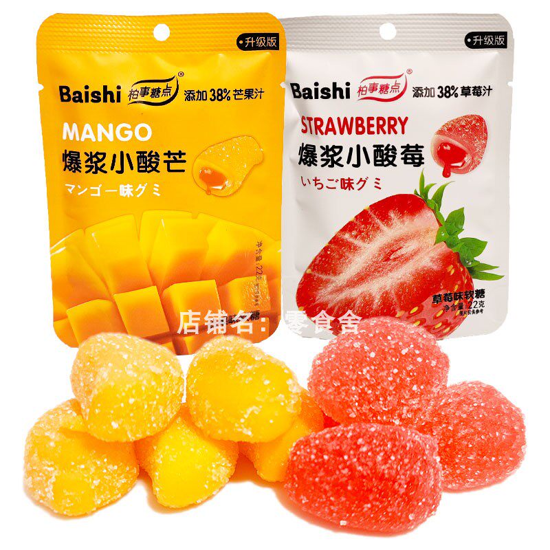 柏事糖点爆浆小酸芒小酸莓软糖芒果味草莓零食休闲糖果小包装22g