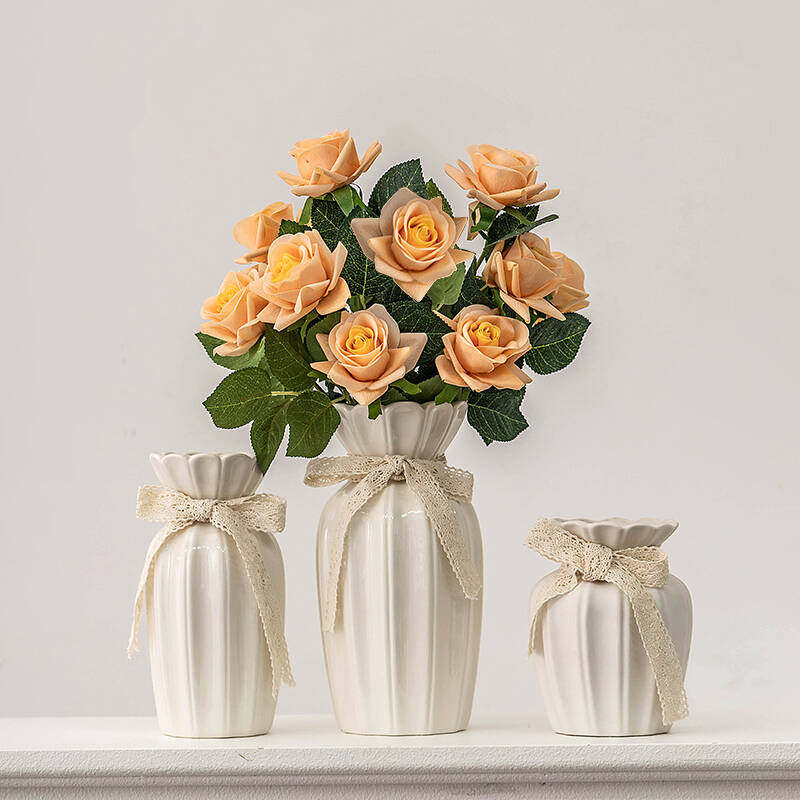 日本进口玫瑰插花花瓶简约陶瓷花器餐桌干花鲜花水培装饰摆件