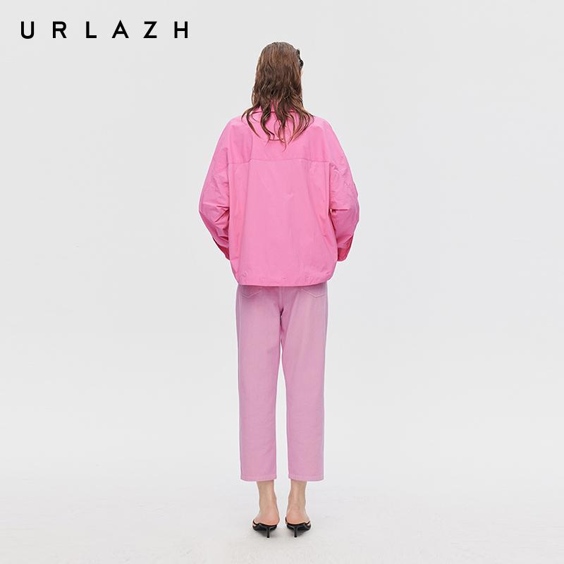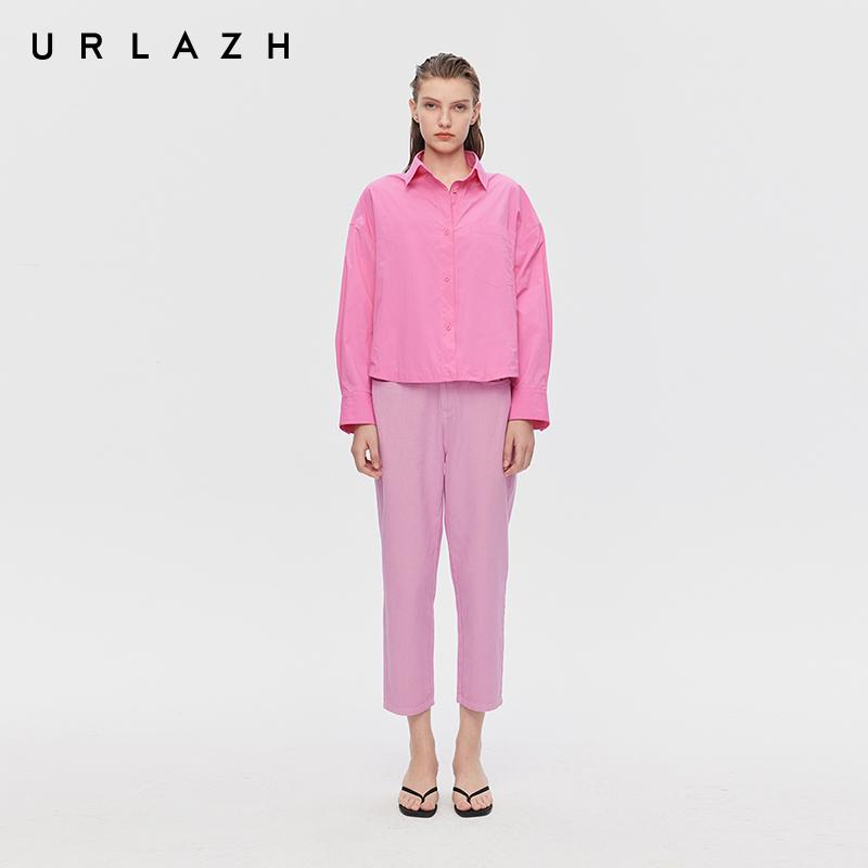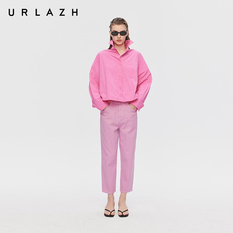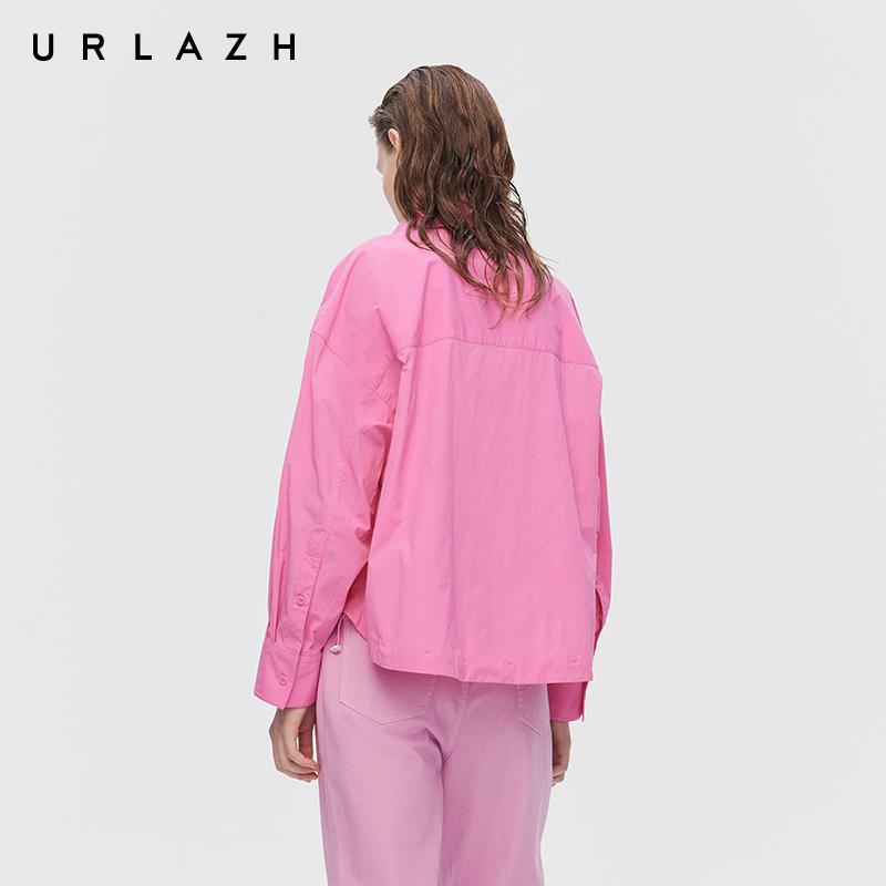 商场同款URLAZH有兰2025秋季新款玫红色宽松落肩短款翻领衬衫女
