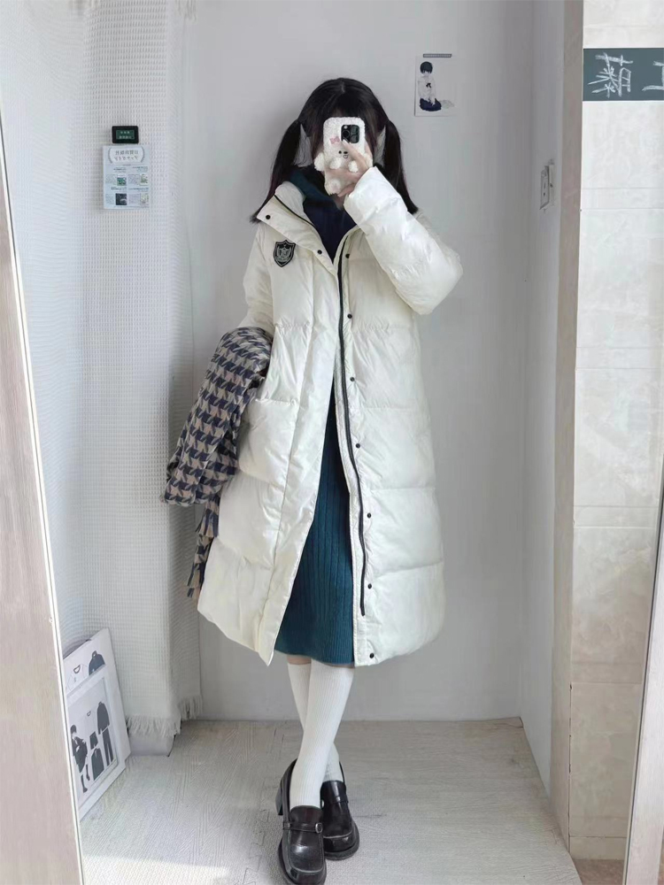 【神仙club】jk艺校学院风长款连帽羽绒服加厚保暖过膝棉服秋冬女