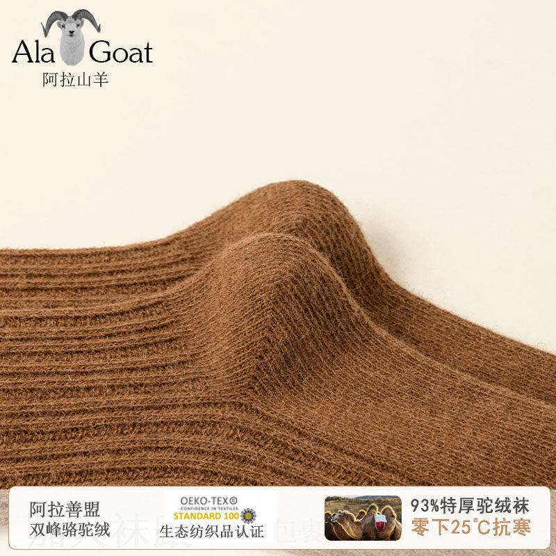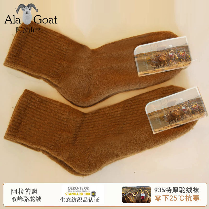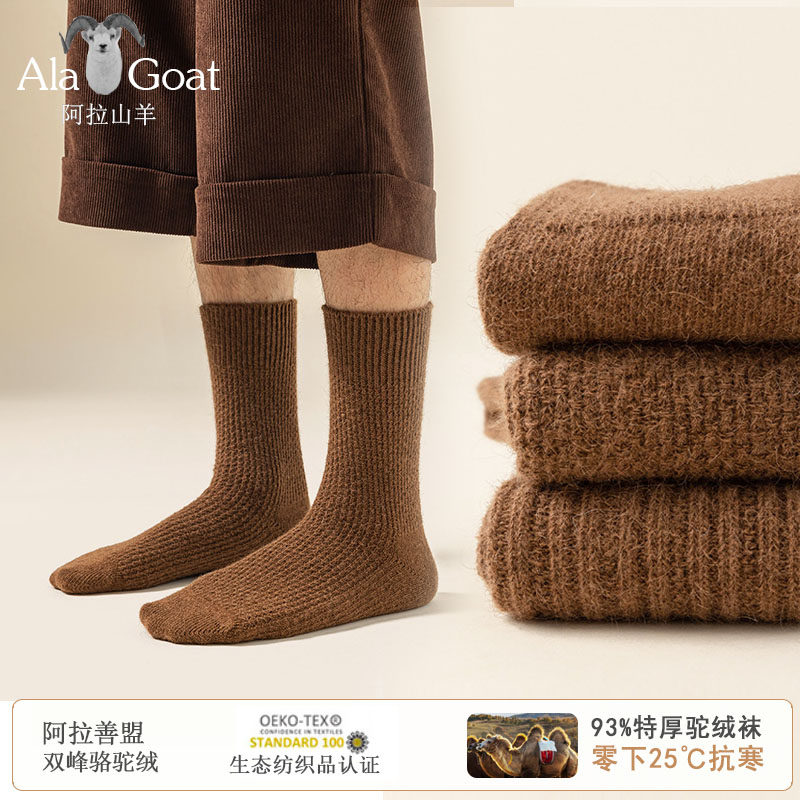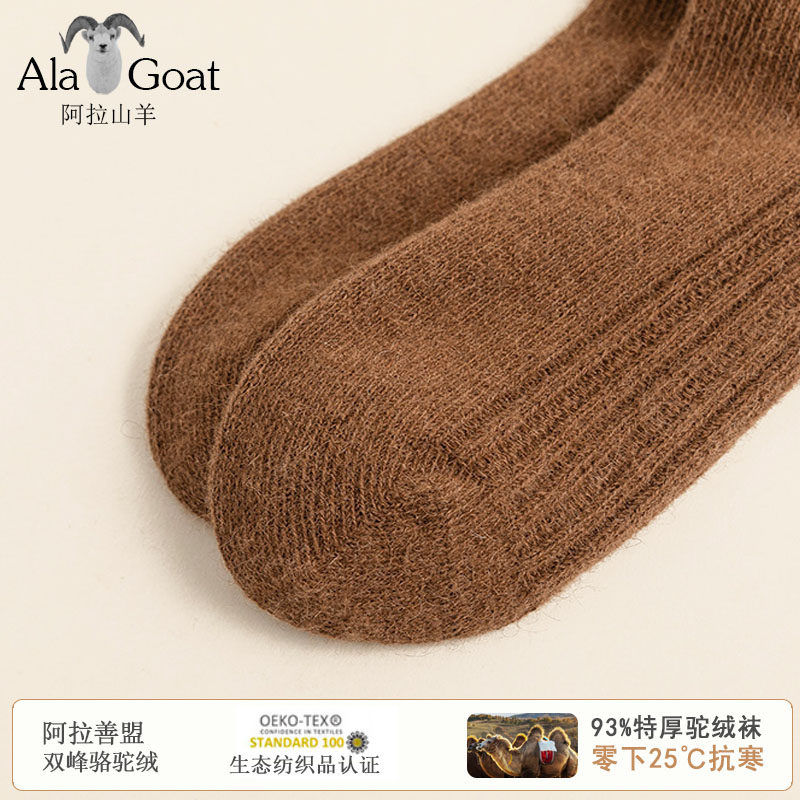 93%驼绒袜子男女特厚保暖透气防臭袜户外中长筒儿童骆驼绒保暖袜
