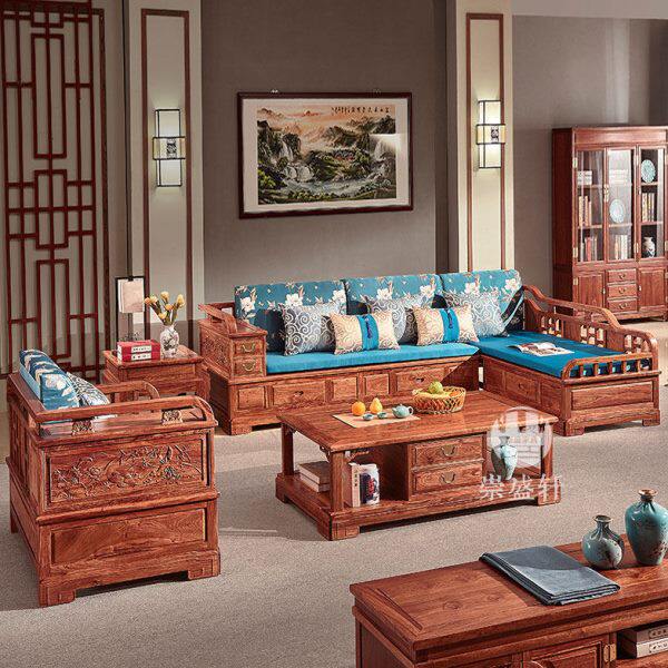 新中式体沙发红木家具实木刺猬花紫檀木软现代简约客厅转角梨贵妃
