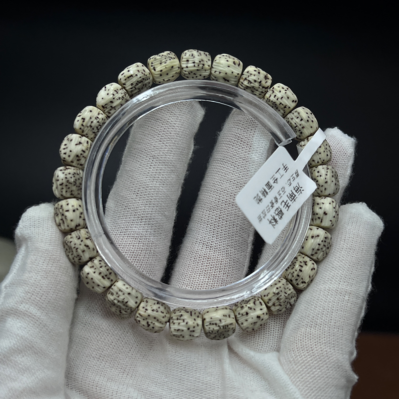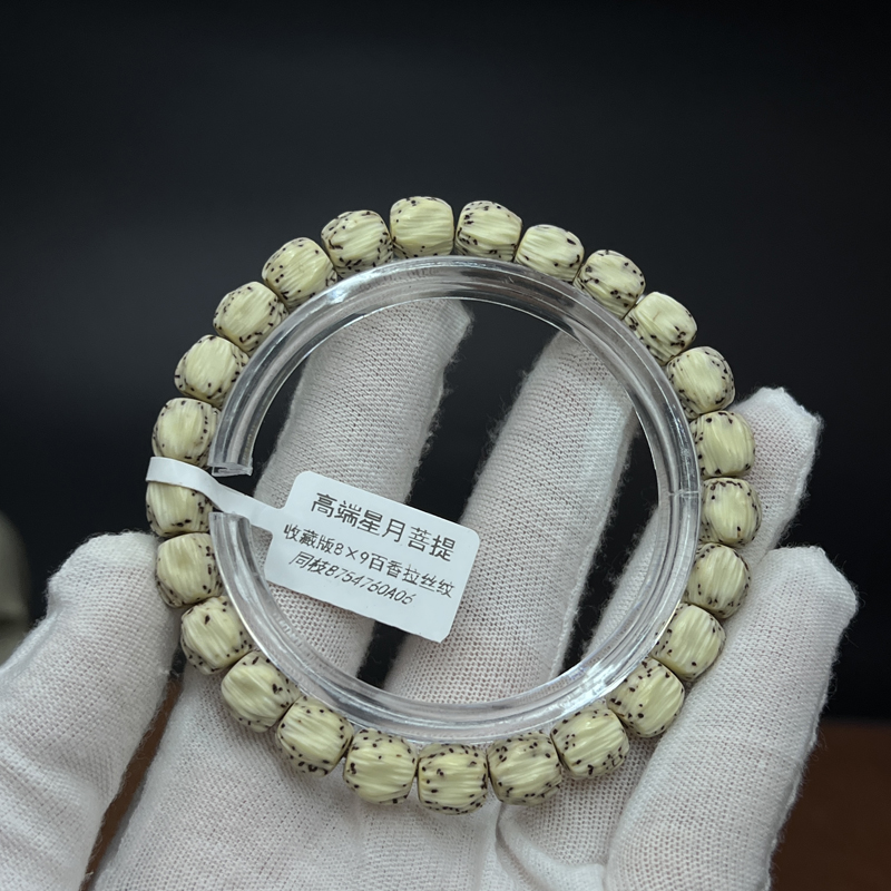 一物一图天花板手工雕刻石玉8*9拉丝纹大留白骨瓷白星月菩提手串