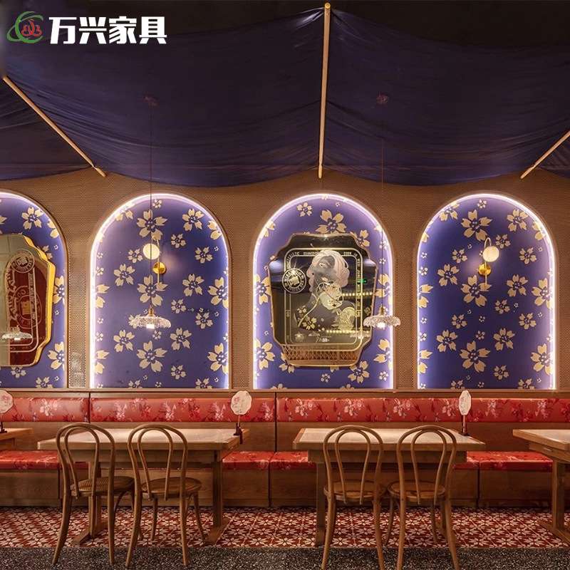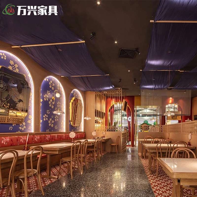 轻奢大理石中餐桌主题店餐馆酒店咖啡奶茶火锅店桌椅组合火锅桌