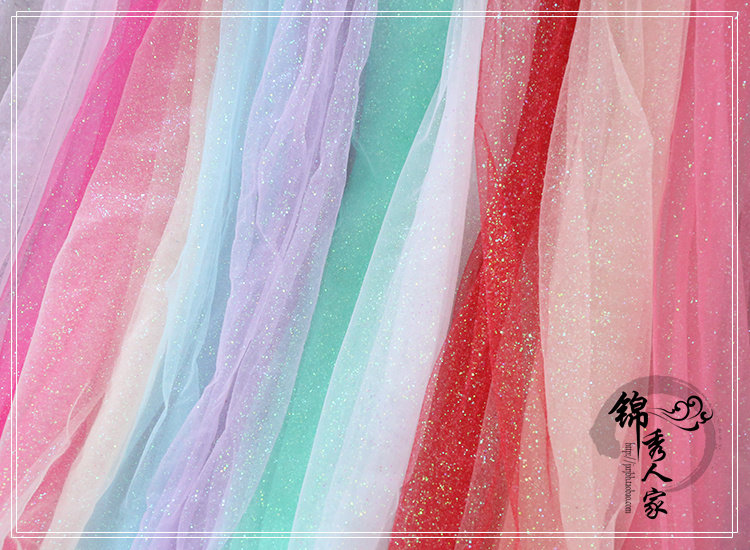 加密美国网纱闪粉布料舞台装礼服婚纱蓬蓬裙面料装饰亮片网纱布料