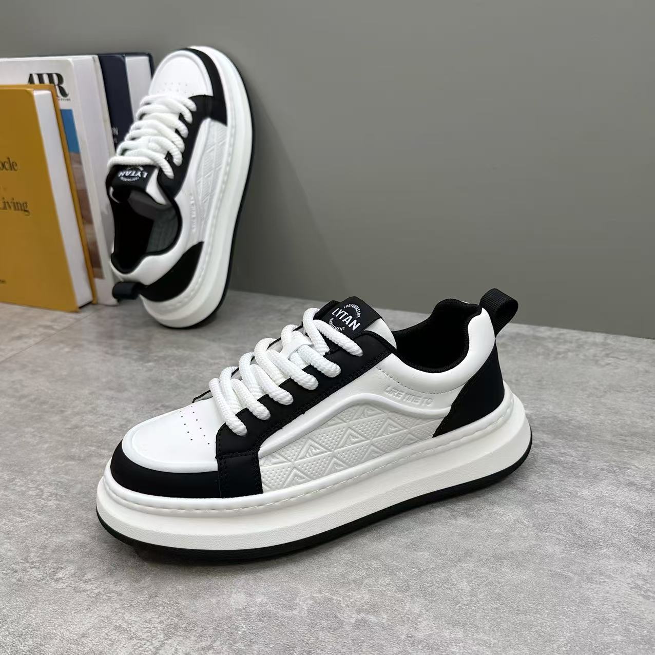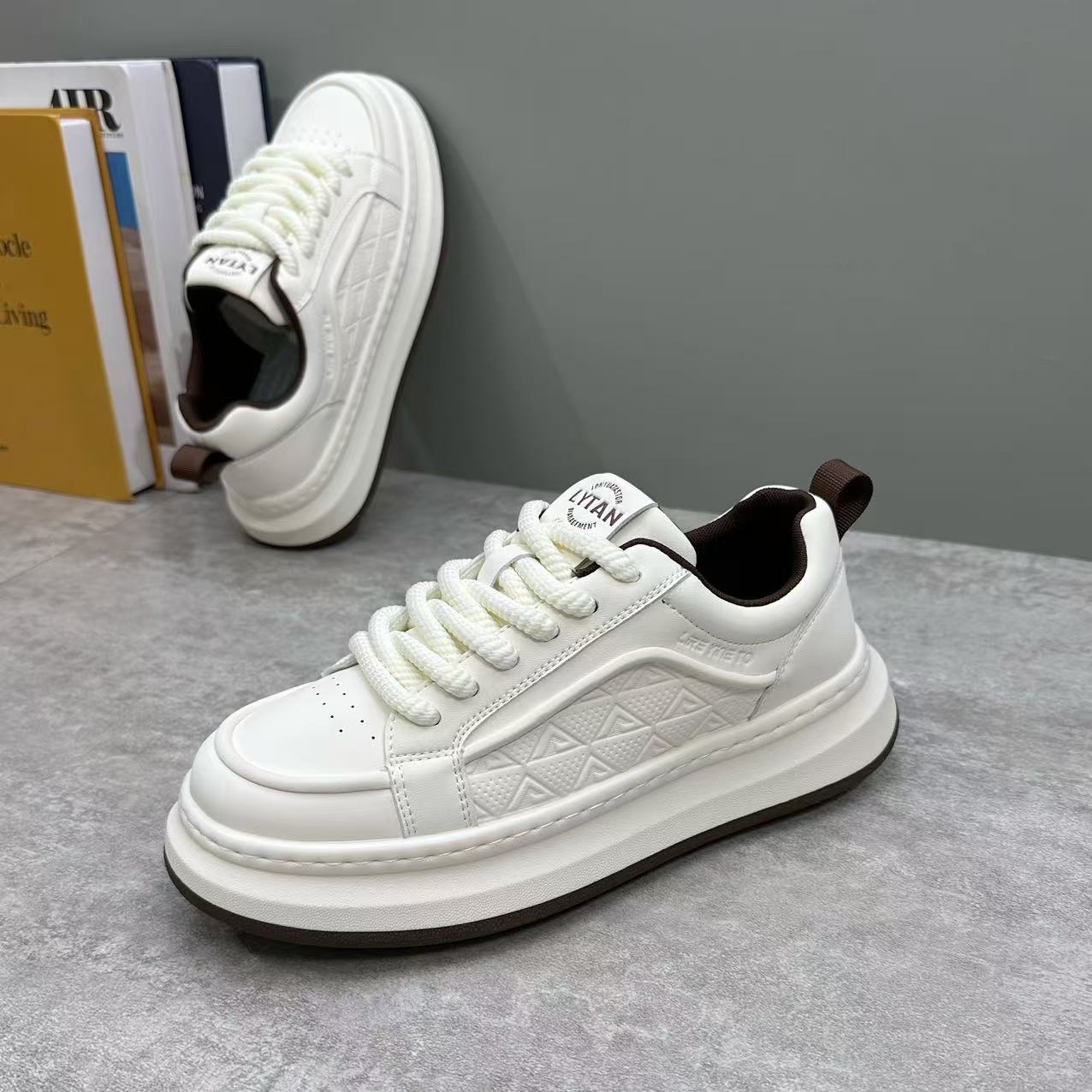 潮牌小白鞋男2025秋季新款时尚百搭厚底板鞋男士真皮运动休闲男鞋
