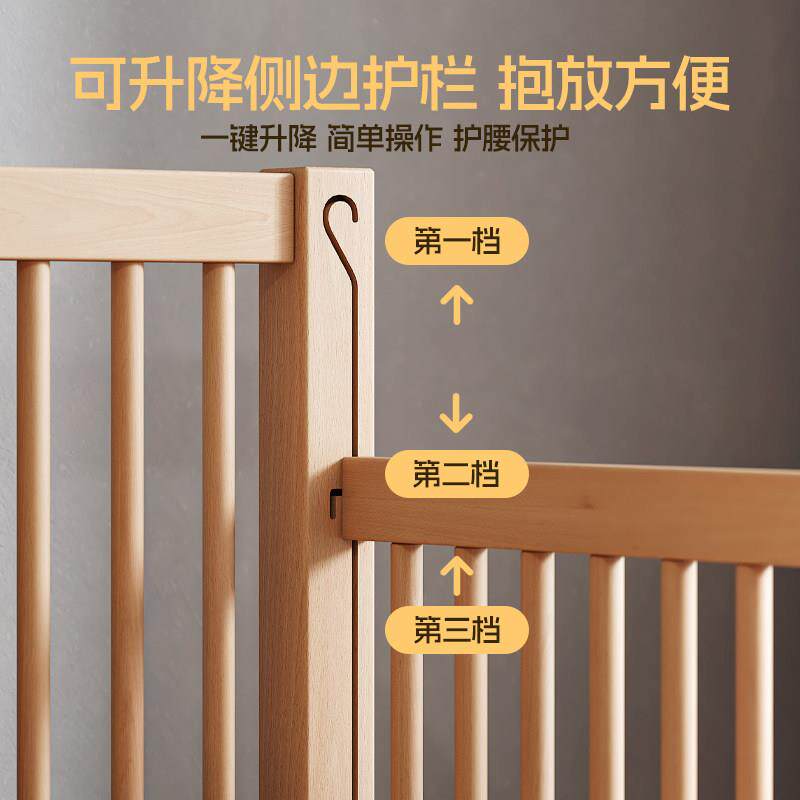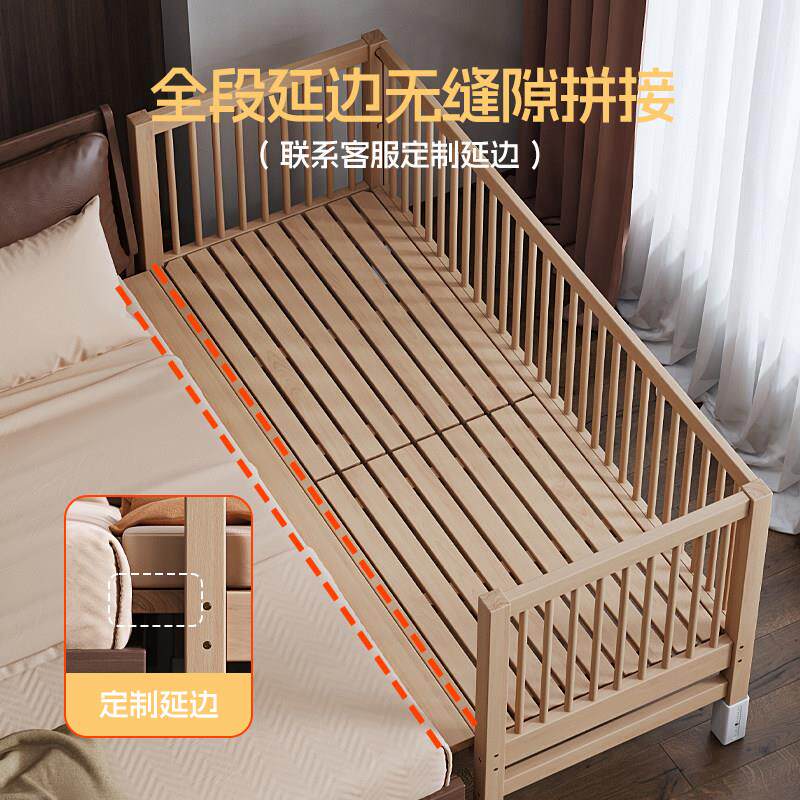 定制榉木升降带护栏儿童床拼接床婴儿大床床边加宽宝宝床实木小床