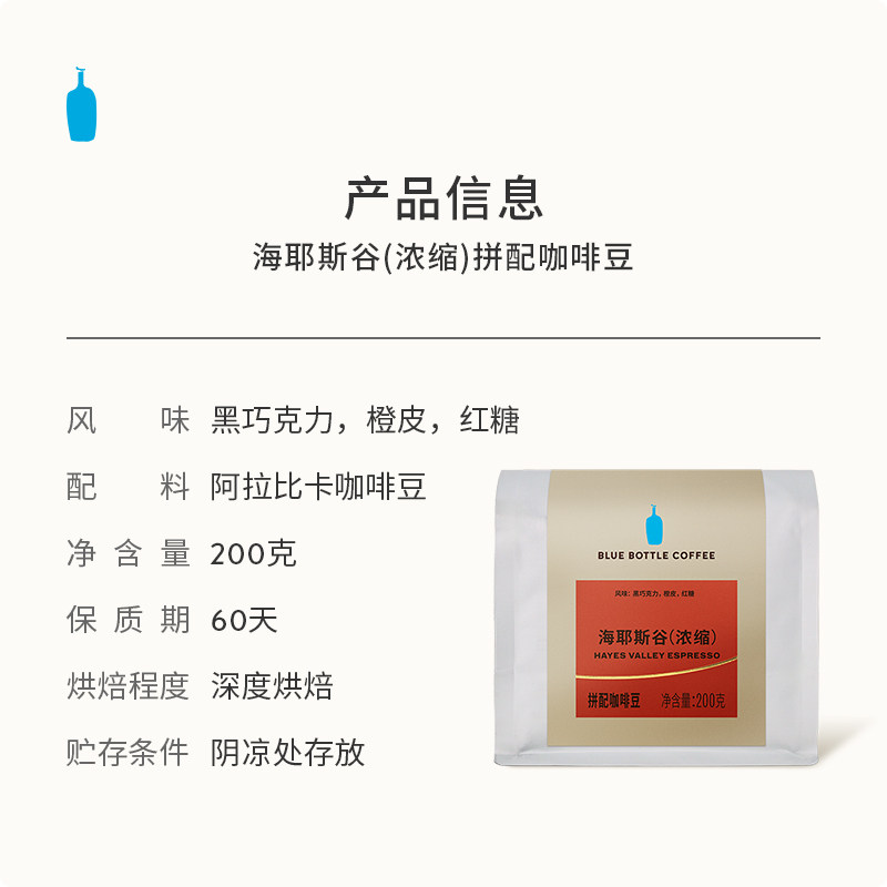 BlueBottleCoffee蓝瓶咖啡 海耶斯谷咖啡豆 深烘拼配咖啡烘焙浓缩